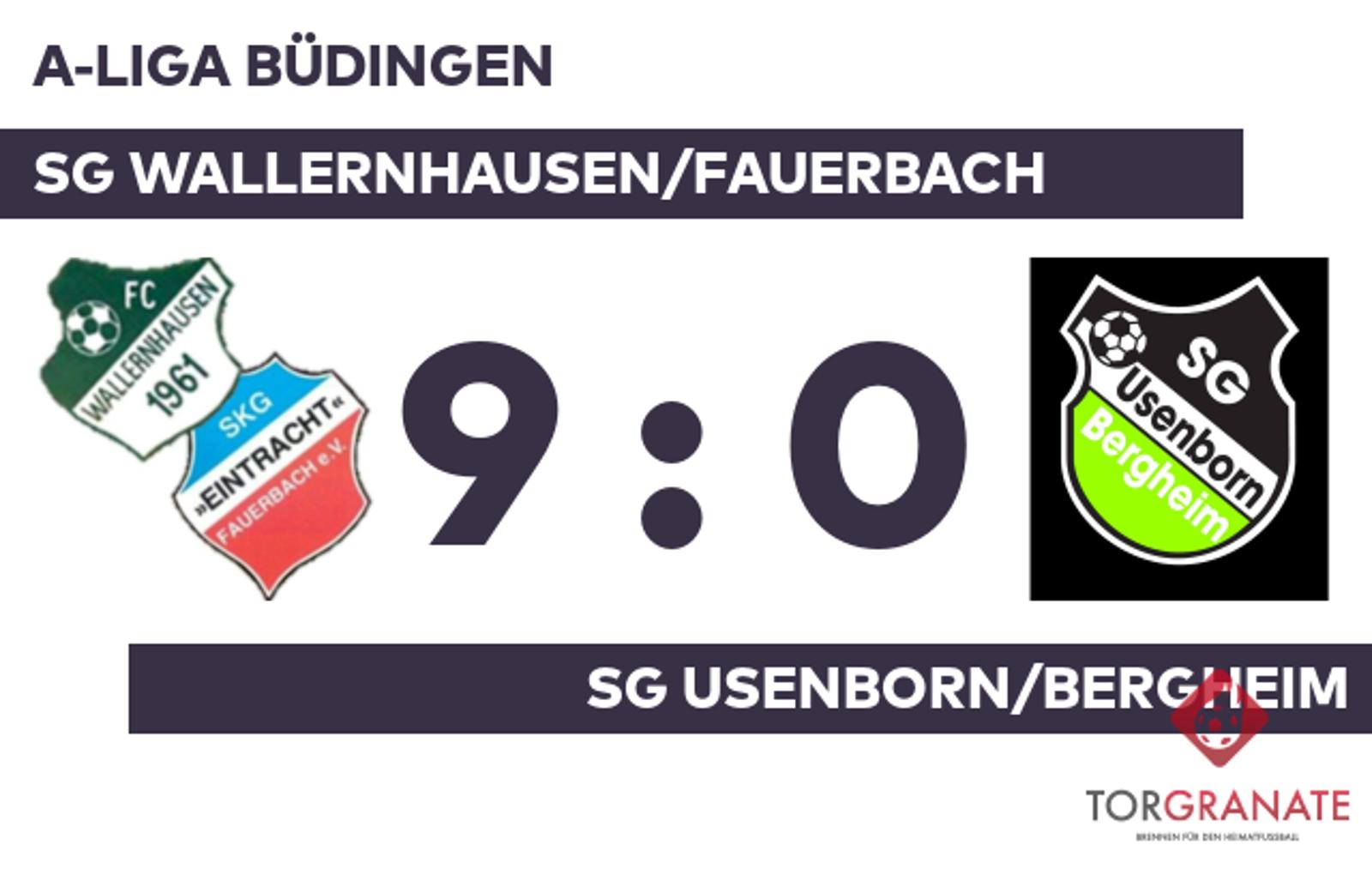 A-Liga Büdingen: SG Wallernhausen/Fauerbach – SG Usenborn/Bergheim, 9:0 (4:0)