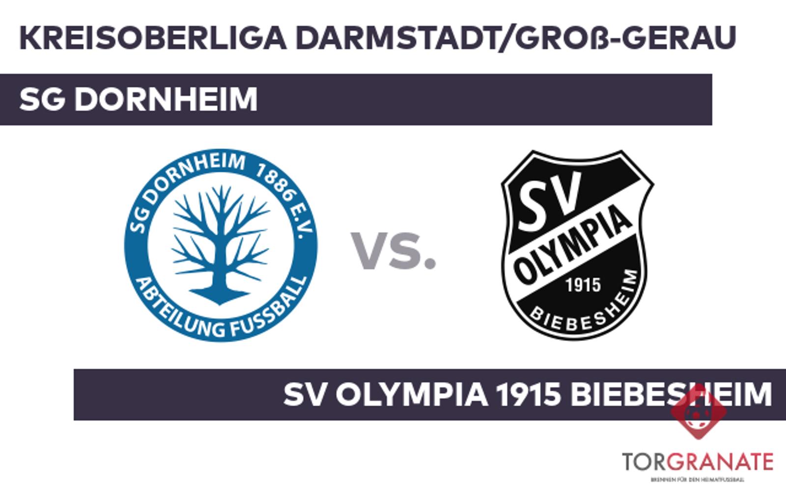 Kreisoberliga Darmstadt/Groß-Gerau: SG Dornheim – SV Olympia 1915 Biebesheim (Sonntag, 15:30 Uhr)