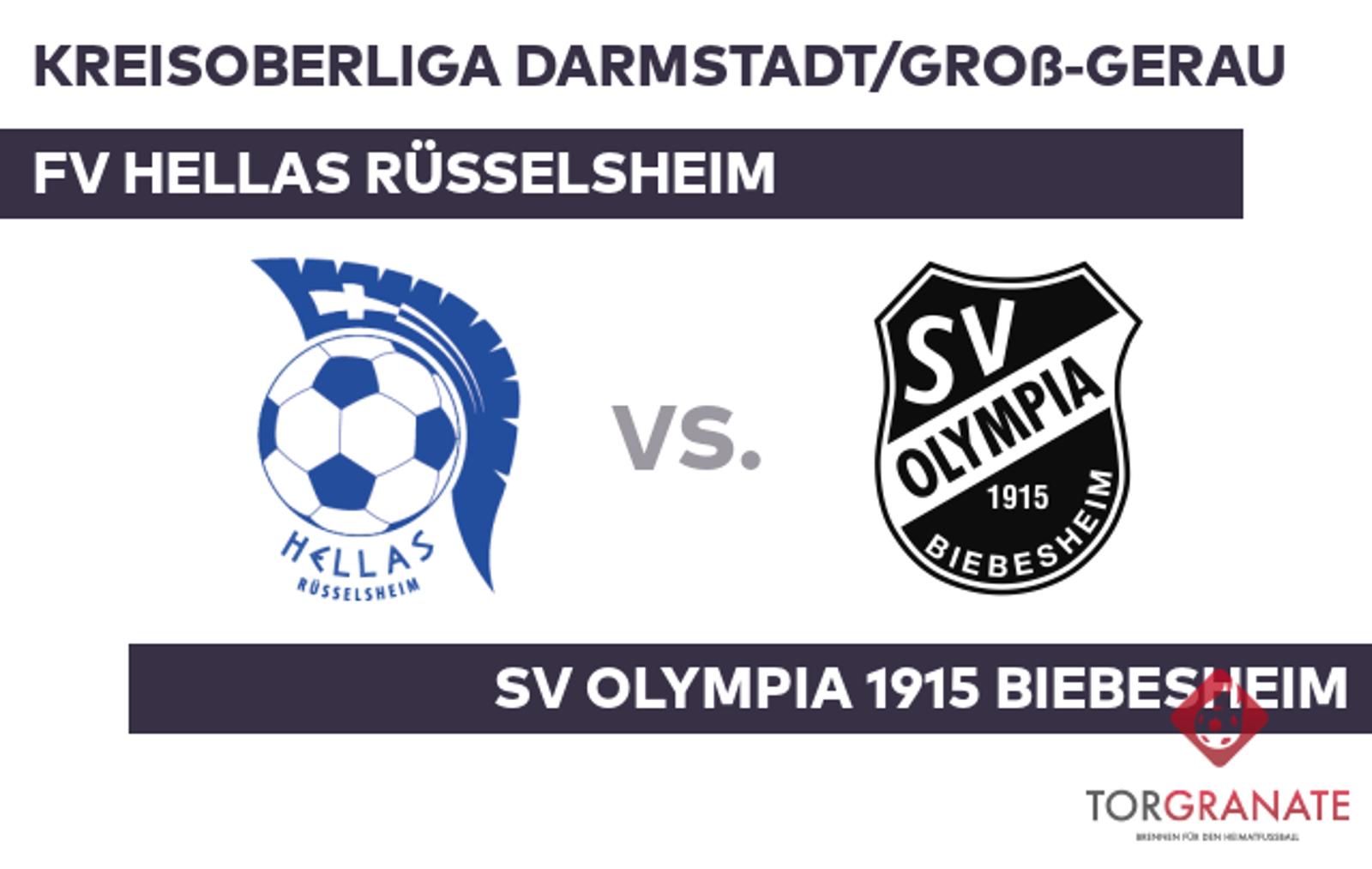 Kreisoberliga Darmstadt/Groß-Gerau: FV Hellas Rüsselsheim – SV Olympia 1915 Biebesheim (Sonntag, 15:30 Uhr)