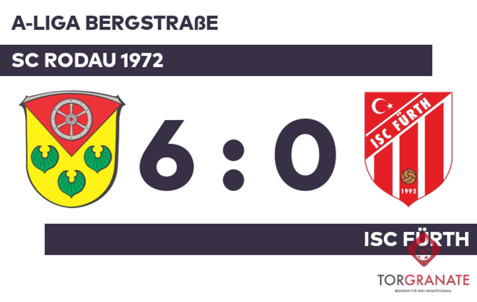 A-Liga Bergstraße: SC Rodau 1972 – ISC Fürth, 6:0 (2:0)