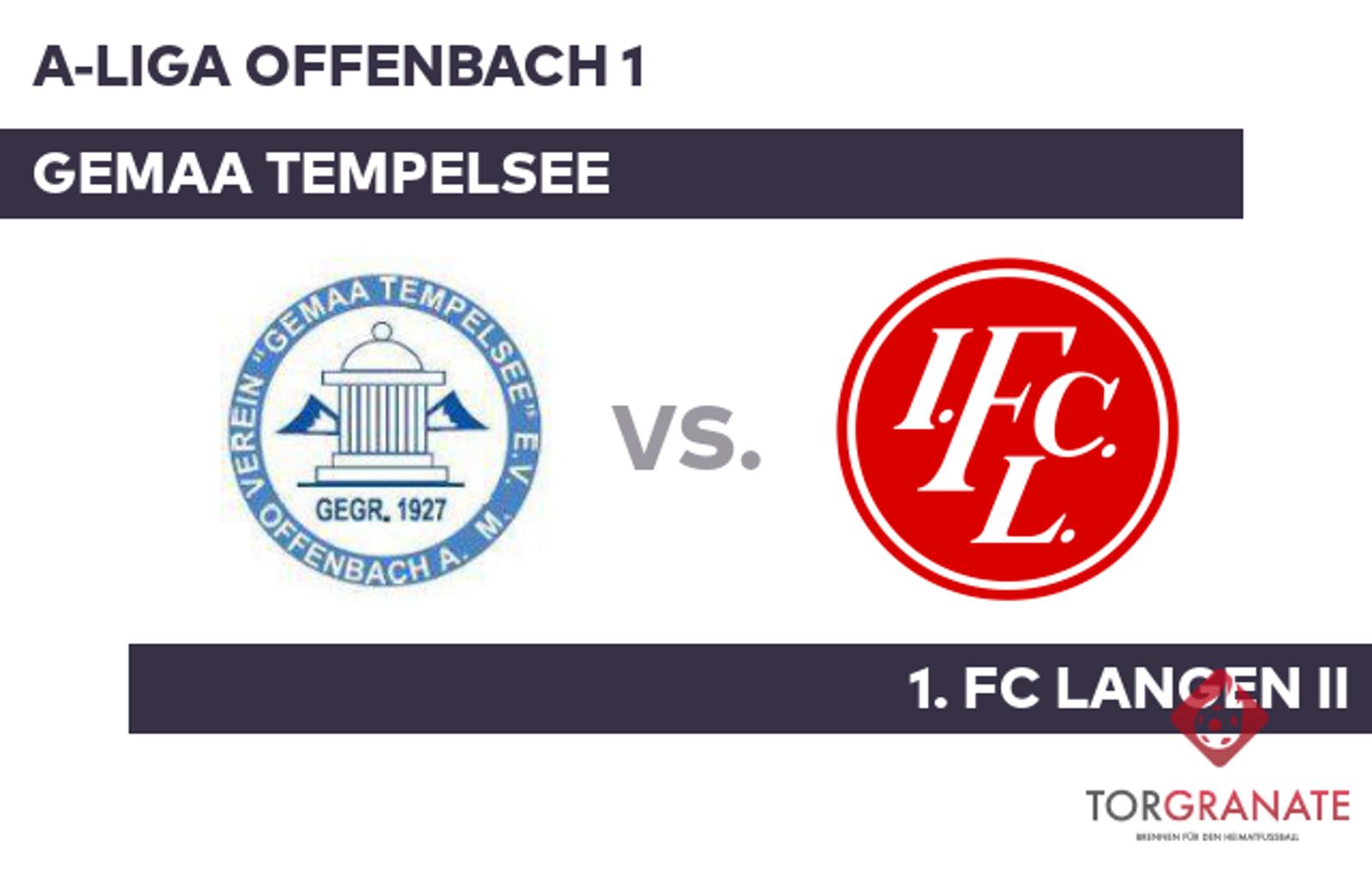 A-Liga Offenbach 1: Gemaa Tempelsee – 1. FC Langen II (Sonntag, 15:00 Uhr)