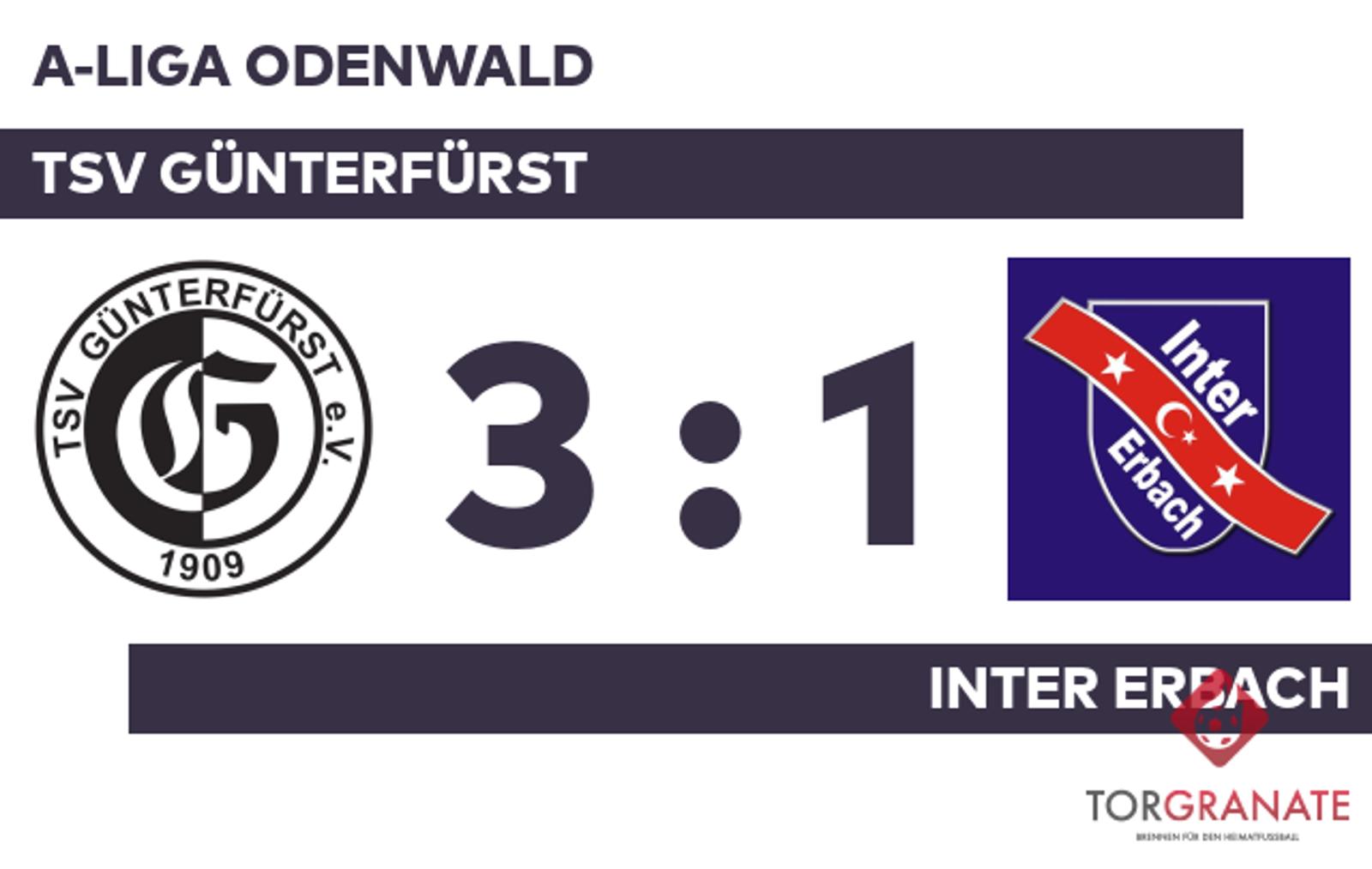 A-Liga Odenwald: TSV Günterfürst – Inter Erbach, 3:1 (2:1)