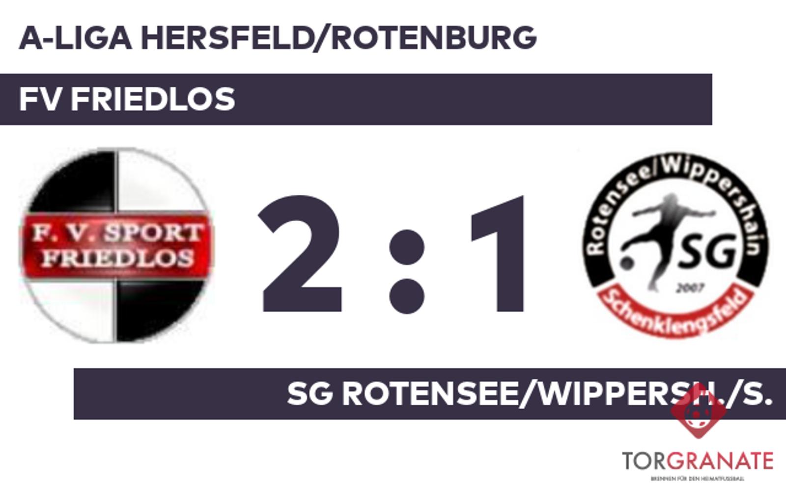 A-Liga Hersfeld/Rotenburg: FV Friedlos – SG Rotensee/Wippersh./S, 2:1 (1:1)