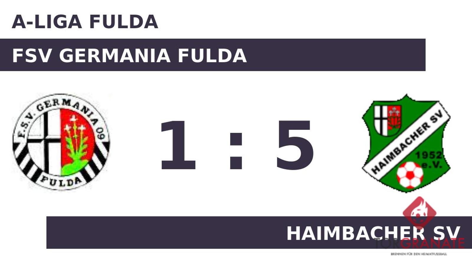 Julian Heins brachte den FSV Germania Fulda in der 21. Minute ins Hintertreffen. Im ersten Durchgang hatte der Haimbacher SV etwas mehr Zug zum Tor und ging mit einem knappen Vorsprung in die Kabine. Wenig später kamen Tom Rux und Mohammad Hasanzadeh per Doppelwechsel für Rinor Imeri und Shpend Brovina auf Seiten von Germania Fulda ins Match (53.). In der 57. Minute erzielte Armend Murati das 1:1 für die Germania. Der Treffer zum 2:1 sicherte dem Haimbacher SV nicht nur die Führung – es war auch bereits der zweite von Heins in diesem Spiel (62.). Luc Robin Jöckel beförderte das Leder zum 3:1 des HSV über die Linie (75.). Für das 4:1 der Haimbacher sorgte Ben Jung, der in Minute 87 zur Stelle war. Ehe der Abpfiff ertönte, war es Justus Henky, der das 5:1 aus Sicht des Gasts perfekt machte (90.). Letzten Endes ging der Haimbacher SV im Duell mit dem FSV Germania Fulda als Sieger hervor.