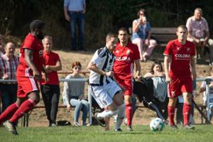 “Das war heute relativ wenig Fußball”, fasste Ehrenbergs Spielertrainer Robert Schorstein mit einer Portion Humor das Spitzenspiel in Hosenfeld zusammen: “Wir haben das Spiel als Kampf angenommen und Hosenfeld gut gestört - das war genau das was wir wollten, Hosenfeld die Schnelligkeit nehmen.“ Von Beginn der Partie an schallten laute Rufe der Ehrenberger Spieler über den Hosenfelder Sportplatz. Eine Selbstmotivation den Gegner Hosenfeld früh anzulaufen und im Spielaufbau zu stören. Diese Taktik funktionierte hervorragend und machte die Hosenfelder Defensive nervös, sodass häufig das lange Holz ausgepackt werden musste.