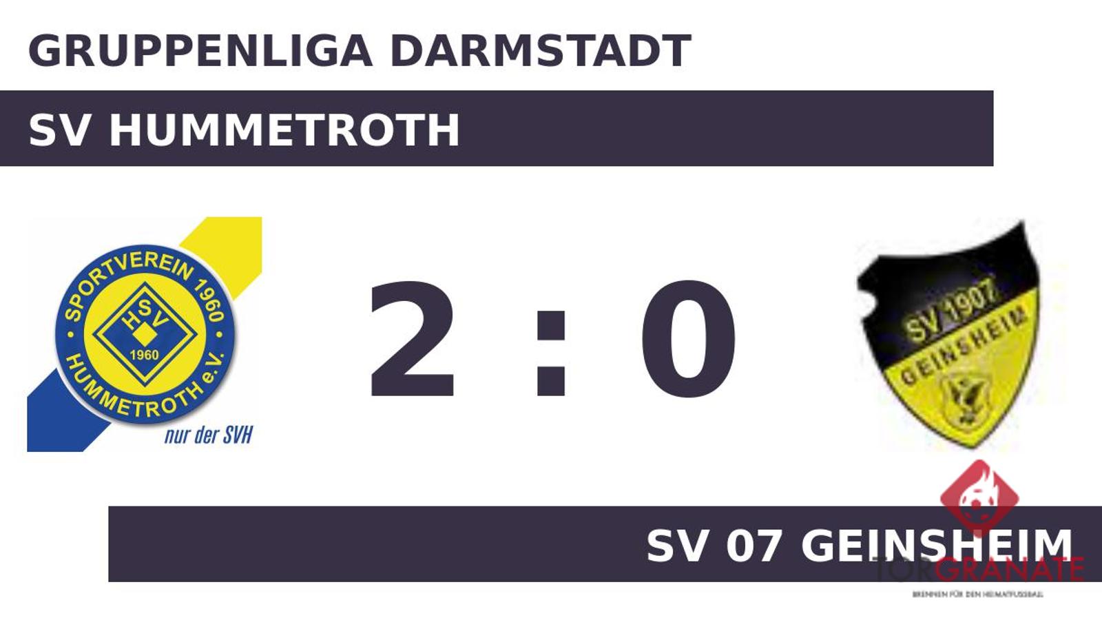 Giuseppe Burgio brachte den SV Hummetroth in der 20. Minute in Front. Der SV 07 Geinsheim brauchte den Ausgleich, aber die Führung des SV Hummetroth hatte bis zur Pause Bestand. Beim SV Hummetroth kam Berk Kocahal für Danny Klein ins Spiel und sollte fortan für neue Impulse sorgen (71.). Ehe der Abpfiff ertönte, war es Kocahal, der das 2:0 aus Sicht des SV Hummetroth perfekt machte (90.). Mit dem Schlusspfiff durch den Unparteiischen Tobias Michler (Dreieich) siegte der SV Hummetroth gegen den SV 07 Geinsheim.