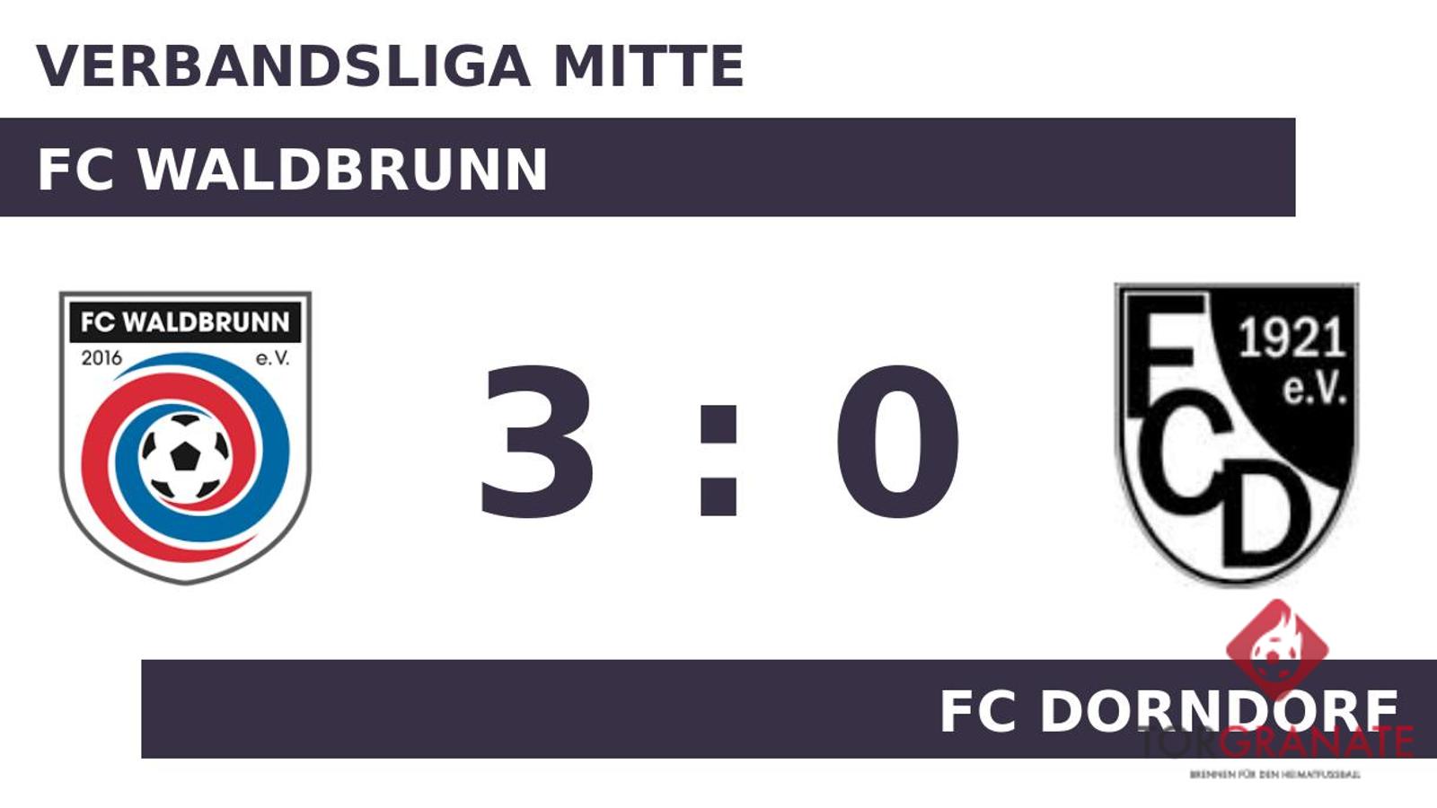 Maximilian Neuhof stellte die Weichen für den FC Waldbrunn auf Sieg, als er in Minute 27 mit dem 1:0 zur Stelle war. Steffen Rücker erhöhte für den FCW auf 2:0 (33.). Mit der Führung für den FC ging es in die Halbzeitpause. Der Treffer von Takuya Kakui in der 46. Minute schürte bei Fans und Spielern die Hoffnung auf den Aufstieg. In der 65. Minute stellte der FC Dorndorf personell um: Per Doppelwechsel kamen Marcel Jede und Filipe Alves auf den Platz und ersetzten Moritz Meister und Jakob Bender. Letztlich fuhr der FC Waldbrunn einen souveränen Erfolg ein, dessen Grundstein im ersten Spielabschnitt gelegt worden war.