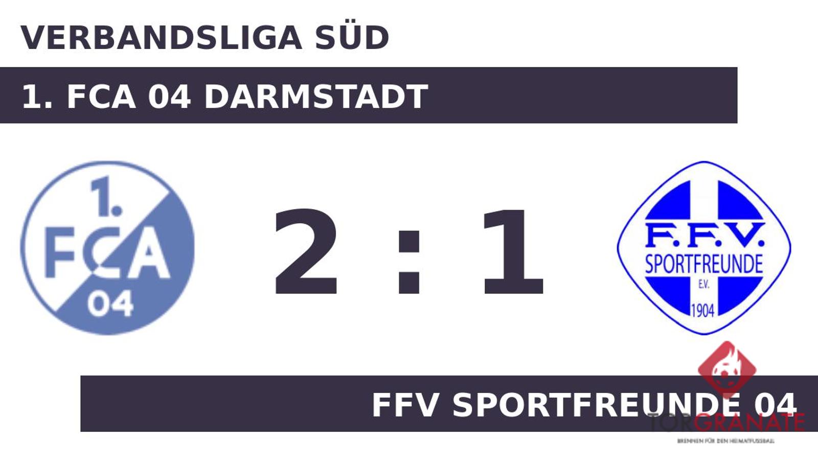 Noch bevor es in die Halbzeit ging, war Mateus Henrique Morais Dias mit dem 1:0 für die Gastgeber zur Stelle (44.). Mit einem Tor Vorsprung für den 1. FCA 04 Darmstadt ging es für die beiden Teams in die Halbzeitpause. Zum Seitenwechsel ersetzte Ivan Curic von der FFV Sportfreunde 04 seinen Teamkameraden Goushi Yamamoto. Estevão Borges erhöhte für den FCA Darmstadt auf 2:0 (47.). Curic ließ sich in der 51. Minute nicht zweimal bitten und verwertete zum 1:2 für die FFV Sportfreunde 04. Nach der Beendigung des Spiels durch Schiedsrichter Florian Tesch (Groß-Zimmern) feierte der 1. FCA 04 Darmstadt einen dreifachen Punktgewinn gegen die FFV Sportfreunde 04.