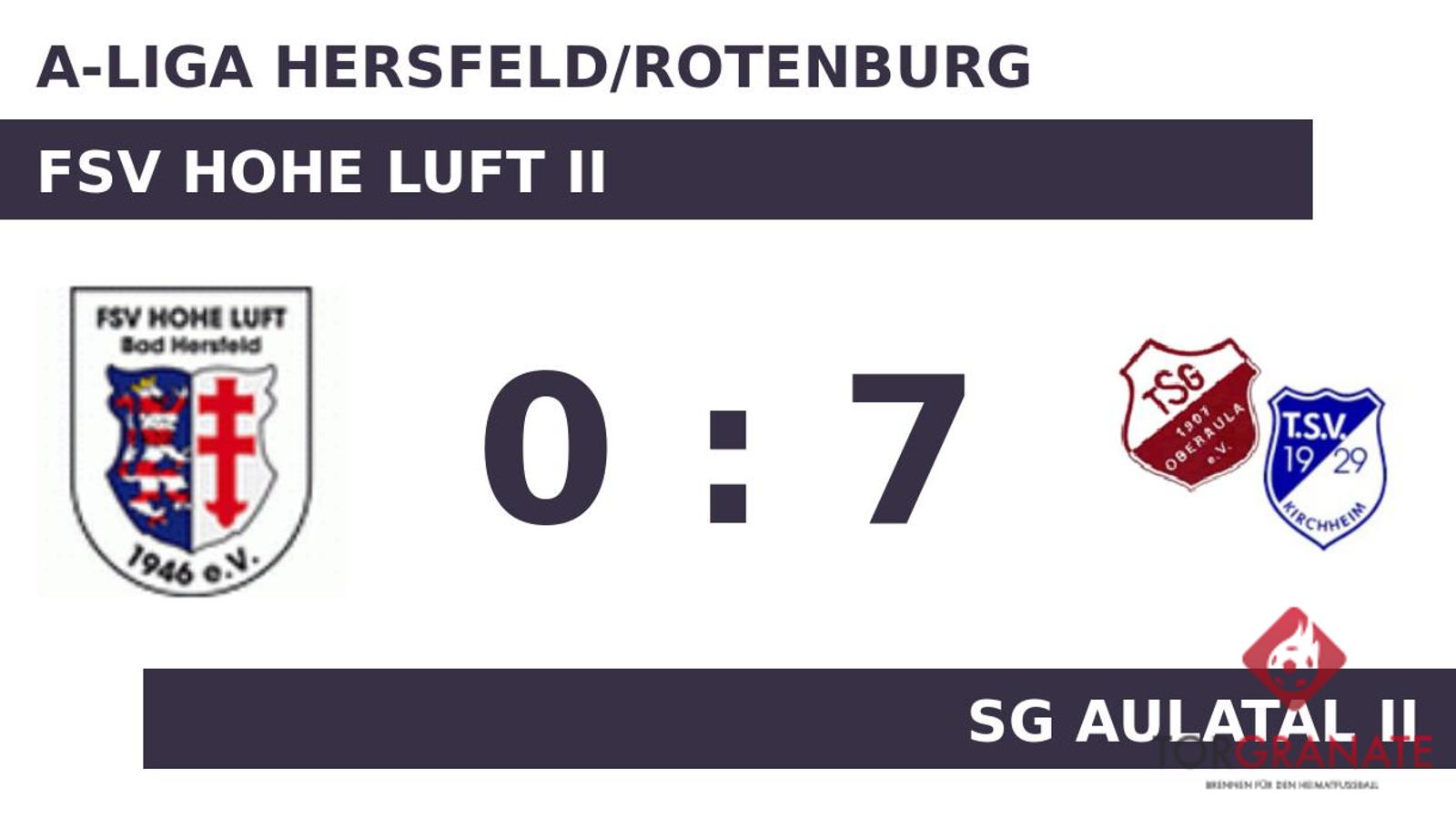 Für den Führungstreffer der SGA zeichnete Leonard Piranty verantwortlich (24.). Jehad Abed Alrahman verwandelte in der 35. Minute einen Elfmeter und baute den Vorsprung der Spielgemeinschaft auf 2:0 aus. Es waren die Gäste, die zur Pause eine Führung ihr Eigen nannten. Daniel Naumann gelang ein Doppelpack (46./55.), mit dem er das Ergebnis auf 4:0 hochschraubte. Für die Reserve des FSV Hohe Luft war es ein Tag zum Vergessen. Joshua Piel (60.), Naumann (73.) und Abed Alrahman (74.) machten das Unheil perfekt. Die SG Aulatal II überrannte den FSV Hohe Luft II förmlich mit sieben Toren und fährt so mit einem verdienten Sieg in der Tasche nach Hause.