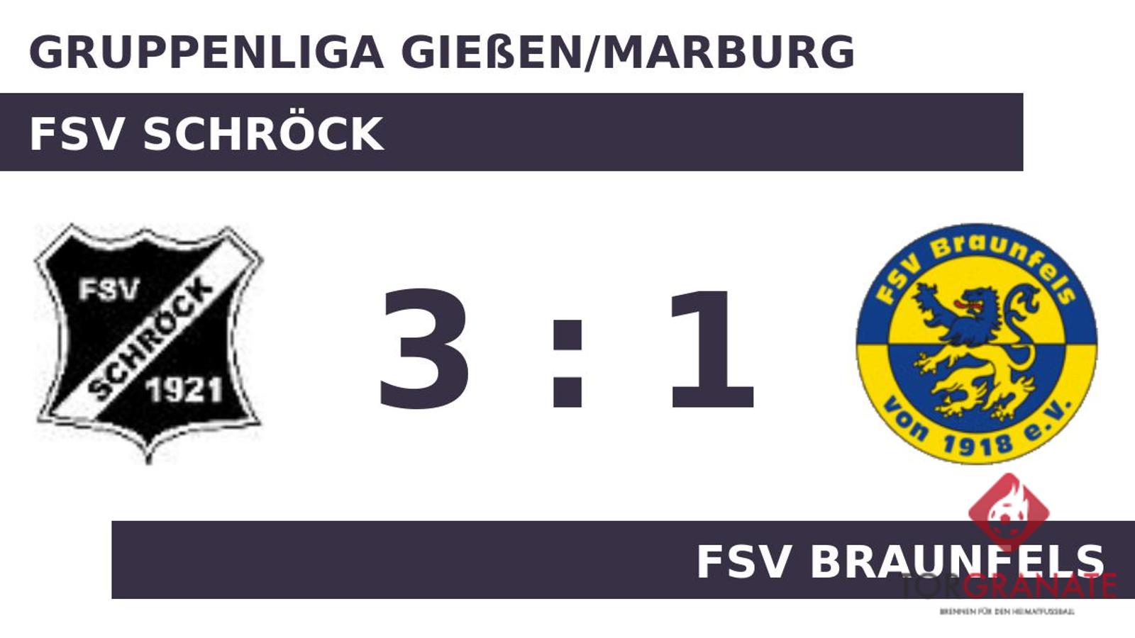 Der FSV Schröck setzte sich mit diesem Sieg vom FSV Braunfels ab und nimmt nun mit 18 Punkten den zehnten Rang ein, während Braunfels weiterhin zwölf Zähler auf dem Konto hat und den 18. Tabellenplatz einnimmt.