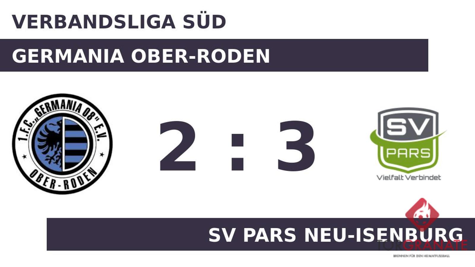 Estevão Borges brachte Germania Ober-Roden in der 25. Minute ins Hintertreffen. Issaka Mouhaman beförderte das Leder zum 2:0 des SV Pars Neu-Isenburg über die Linie (28.). Mit dem 3:0 durch Borges schien die Partie bereits in der 30. Minute mit den Neu-Isenburger einen sicheren Sieger zu haben. Der Gast hatte die Chancen genutzt und blickte zur Pause auf einen deutlichen Vorsprung. Germania Ober-Roden wechselte für den zweiten Durchgang: Marco Christophori-Como spielte für Jonas Dapp weiter. In der 49. Minute brachte Johannes Günther das Netz für den 1. FC Germania 08 zum Zappeln. Das 2:3 der Ober-Rodener stellte Hakan Firat sicher (62.). Kurz vor dem Ende des Spiels nahm der SV Pars Neu-Isenburg noch einen Doppelwechsel vor, sodass Samuel Puth und Michel Gschwender für Sinisa Alempic und Yassin El Haddoudi weiterspielten (90.). Trotz einer deutlichen Leistungssteigerung im Verlauf der Partie schaffte es Germania Ober-Roden nicht mehr, etwas Zählbares zu erringen.