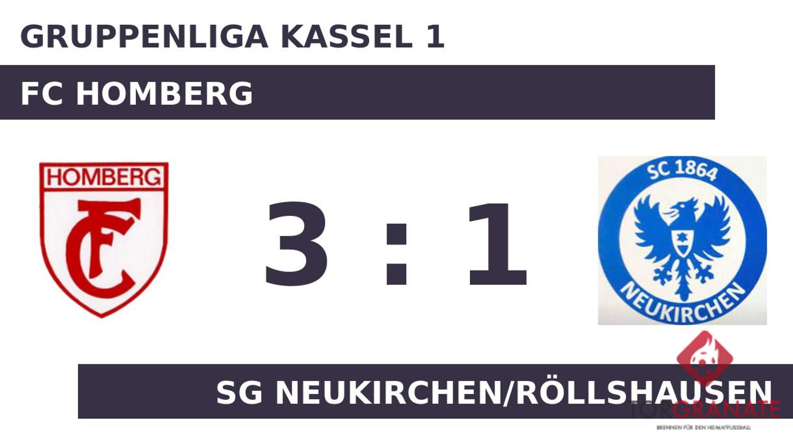 Der Gast erwischte einen Blitzstart ins Spiel. Ricardo Seck traf in der sechsten Minute zur frühen Führung. Louis Kusan nutzte die Chance für den FC Homberg und beförderte in der 38. Minute das Leder zum 1:1 ins Netz. Zum Seitenwechsel hatte keine Mannschaft die Oberhand gewonnen. Unentschieden lautete der Zwischenstand. Nick Körber versenkte die Kugel zum 2:1 (64.). Nico Brandt stellte wenige Minuten vor dem Schlusspfiff den Stand von 3:1 für den FC Homberg her (90.). Letzten Endes holte der FC Homberg gegen die SG Neukirchen/Röllshausen drei Zähler.