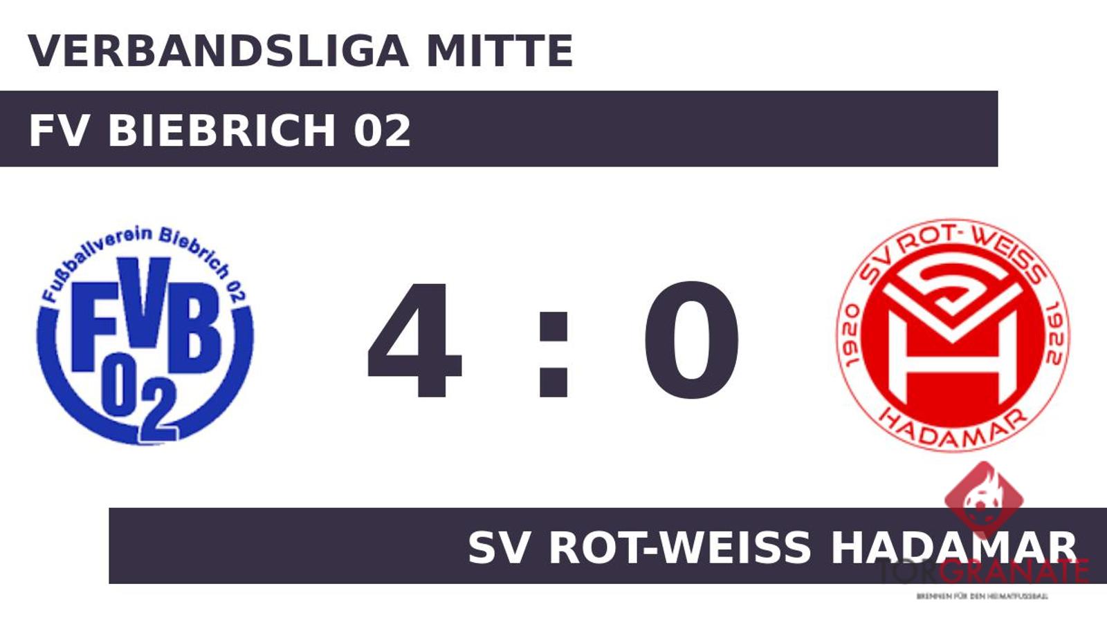 Für das erste Tor sorgte Tim Emmel. In der 27. Minute traf der Spieler des FV Biebrich 02 ins Schwarze. Nennenswerte Szenen blieben bis zum Seitenwechsel aus, sodass das Zwischenergebnis auch zu Beginn des zweiten Durchgangs Bestand hatte. Yoshiki Watai traf zum 2:0 zugunsten des FV Biebrich 02 (62.). Sioh Lim brachte die Biebricher in ruhiges Fahrwasser, indem er das 3:0 erzielte (70.). Gleich drei Wechsel nahm SV Rot-Weiss Hadamar in der 70. Minute vor. Paul Lennart Sapper, Paulo Gombert und Michel Gschwender verließen das Feld für Larion Kosuchin, Hendrik Hillen und Marlon Mario Leidenbach. Watai stellte schließlich in der 80. Minute den 4:0-Sieg für den FV Biebrich 02 sicher. Wenig später kamen Marcel Hossner und Benjamin Aziz Nefatti per Doppelwechsel für Watai und David Schug auf Seiten der Nullzweier ins Match (81.). Letztlich kam der FV Biebrich 02 gegen Rot-Weiss Hadamar zu einem verdienten 4:0-Sieg.