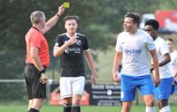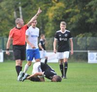 Thalaus Florian Storch (rechts) sieht hier zwar Gelb, doch am Ende machte er das vielumjubelte 1:1. Foto: Julian Belz