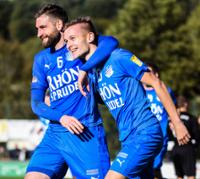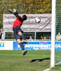 Lufthoheit: Hier köpft Niko Zeller (Nummer 13) das 2:0. Foto: Kevin Kremer