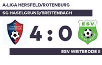 A-Liga Hersfeld/Rotenburg: SG Haselgrund/Breitenbach – ESV Weiterode II, 4:0 (2:0)[zurück]