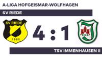 A-Liga Hofgeismar-Wolfhagen: SV Riede – TSV Immenhausen II, 4:1 (1:0)[zurück]
