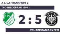 A-Liga Frankfurt 2: TSG Niederrad 1898 II – VfL Germania 94 Ffm, 2:5 (0:1)[zurück]