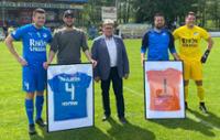 Die Brüder Nico (links) und Lukas Hohmann (rechts) wurden vor dem letzten Heimspiel des SV Buchonia Flieden verabschiedet. Foto: Verein