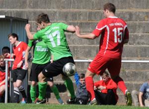 Vielleicht wäre das Spiel schon entschieden gewesen, hätte Teutonen-Stürmer Hendrik Bachmann in Minute 63 nach super Vorarbeit von Lehmann nicht am leeren Tor vorbeigeschossen. So wog das Soden-Spiel immer schwerer in den Großenlüderer Beinen und Künzell witterte – obwohl man oft zu umständlich spielte – Morgenluft.