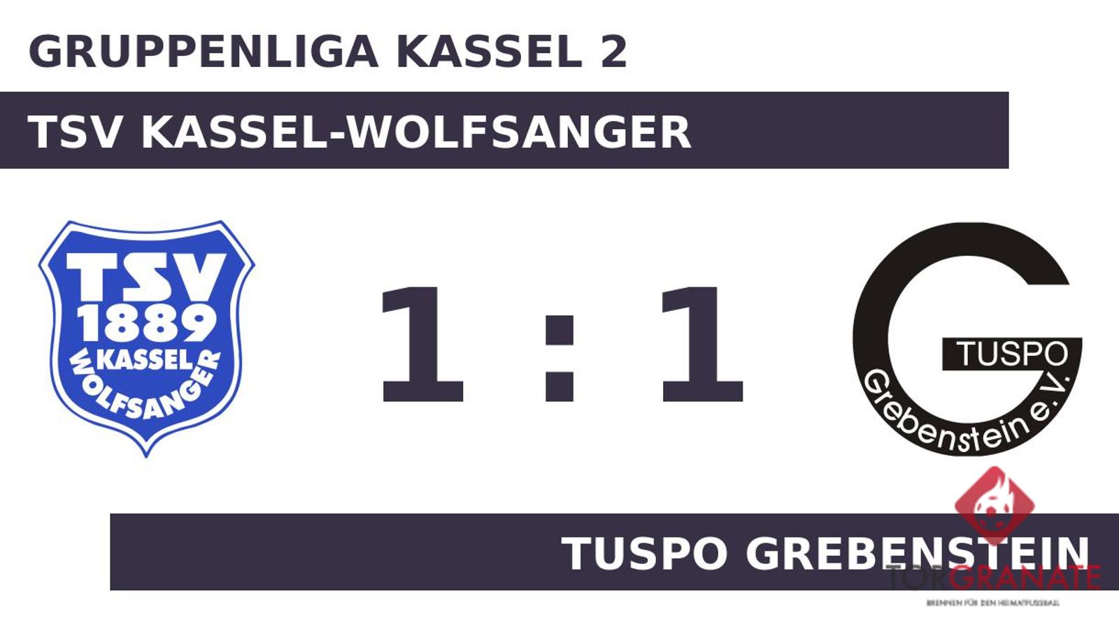 Felix Hegmann brachte den Tuspo Grebenstein in der 39. Minute ins Hintertreffen. Einen Torerfolg in Halbzeit eins verbuchte lediglich der TSV Wolfsanger, womit man eine knappe Führung mit in die Kabinen nahm. Der Tuspo Grebenstein kam durch ein Eigentor des TSV Kassel-Wolfsanger in der 68. Minute zum Ausgleich. Am Ende stand ein Teilerfolg für beide Mannschaften. Der TSV Wolfsanger und der Tuspo Grebenstein spielten unentschieden.