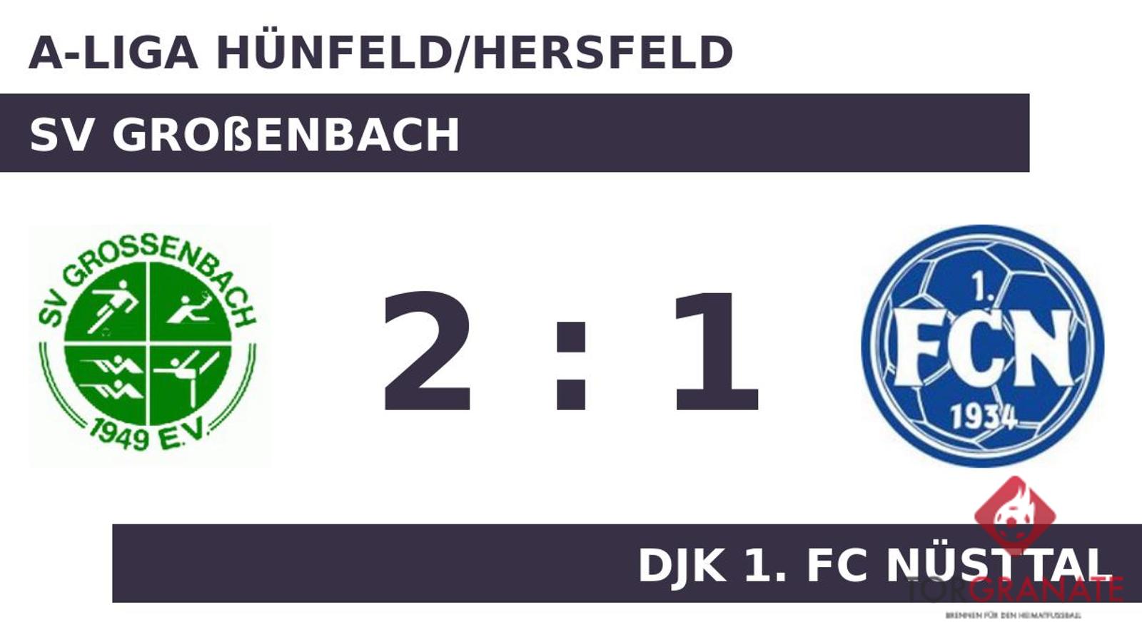 Der SVG erwischte einen Blitzstart ins Spiel. Elias Christl traf in der vierten Minute zur frühen Führung. Andreas Weber nutzte die Chance für den DJK 1. FC Nüsttal und beförderte in der 14. Minute das Leder zum 1:1 ins Netz. Bis zum Pausenpfiff blieb der Stand unverändert. Zum Mann des Spiels avancierte Mario Krieger, der für den SV Großenbach in der Schlussphase den Führungstreffer markierte (87.). Schließlich strich der SV Großenbach die Optimalausbeute gegen den DJK 1. FC Nüsttal ein.