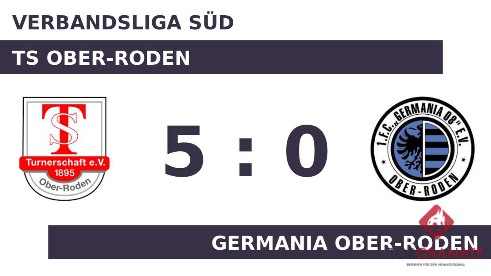 Die TS Ober-Roden erwischte einen Blitzstart ins Spiel. Marius Wertge traf in der zweiten Minute zur frühen Führung. Dennis Profumo verwandelte in der zehnten Minute einen Elfmeter und baute den Vorsprung der Turnerschaft auf 2:0 aus. Das letzte Tor der turbulenten Startphase markierte Jonas Koser in der 14. Minute. Germania Ober-Roden rettete sich mit einem deutlichen Rückstand in die Halbzeitpause. Wenig später kamen Filip Sumanov und Colin Falk per Doppelwechsel für Fynn Kantz und Damien Letellier auf Seiten des 1. FC Germania 08 ins Match (56.). Durch ein Eigentor der Germanen verbesserte die TS Ober-Roden den Spielstand auf 4:0 für sich (64.). Profumo vollendete zum fünften Tagestreffer in der 74. Spielminute. Schlussendlich setzte sich die TS Ober-Roden mit fünf Toren durch und machte bereits vor dem Seitenwechsel klar, welche Mannschaft als Sieger vom Platz gehen würde.