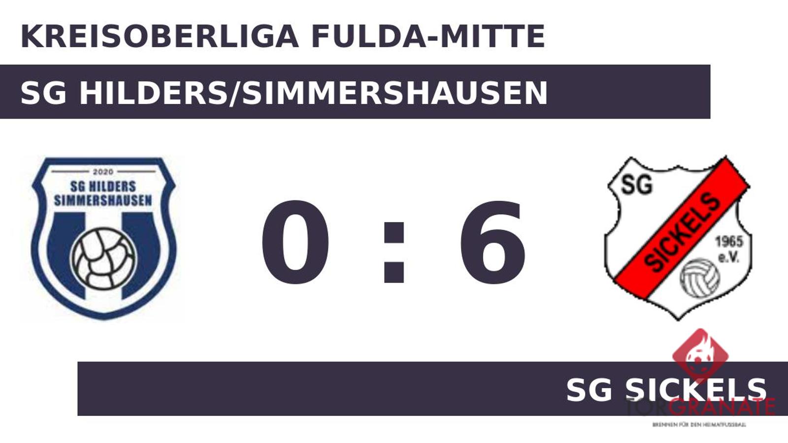 Die SG Hilders/Simmershausen geriet schon in der siebten Minute in Rückstand, als Angel Natsev das schnelle 1:0 für die SG Sickels erzielte. Leonhard Rech beförderte das Leder zum 2:0 der SG Sickels über die Linie (16.). Die SGS baute den Vorsprung mit der Hilfe des Gegners weiter aus: 3:0 für die Gäste durch ein Eigentor der SG Hi/Si in der 26. Minute. Mit dem 4:0 durch Nils Rathjen schien die Partie bereits in der 35. Minute mit der SG Sickels einen sicheren Sieger zu haben. Die Überlegenheit der Sickelser spiegelte sich in einer deutlichen Halbzeitführung wider. Die gute Ausgangslage für den zweiten Durchgang nutzte die SG Sickels zum Wechseln: Claudio Wess spielte fortan für Rathjen weiter. In der Pause stellte die SG Hilders/Simmershausen personell um: Per Doppelwechsel kamen Sebastian Kress und Julian Feuerstein auf den Platz und ersetzten Leon Beck und Jonathan Will. In der 55. Minute legte Pit Küllmer zum 5:0 zugunsten der SG Sickels nach. Cedrik Keller schraubte das Ergebnis in der 59. Minute mit dem 6:0 für die SG Sickels in die Höhe. Die SG Hi/Si wechselte einen nominellen Verteidiger für einen anderen: Philip Enders kam für Robert Faulstich (72.). Schlussendlich setzte sich die SG Sickels mit sechs Toren durch und machte bereits vor dem Seitenwechsel klar, welche Mannschaft als Sieger vom Platz gehen würde.
