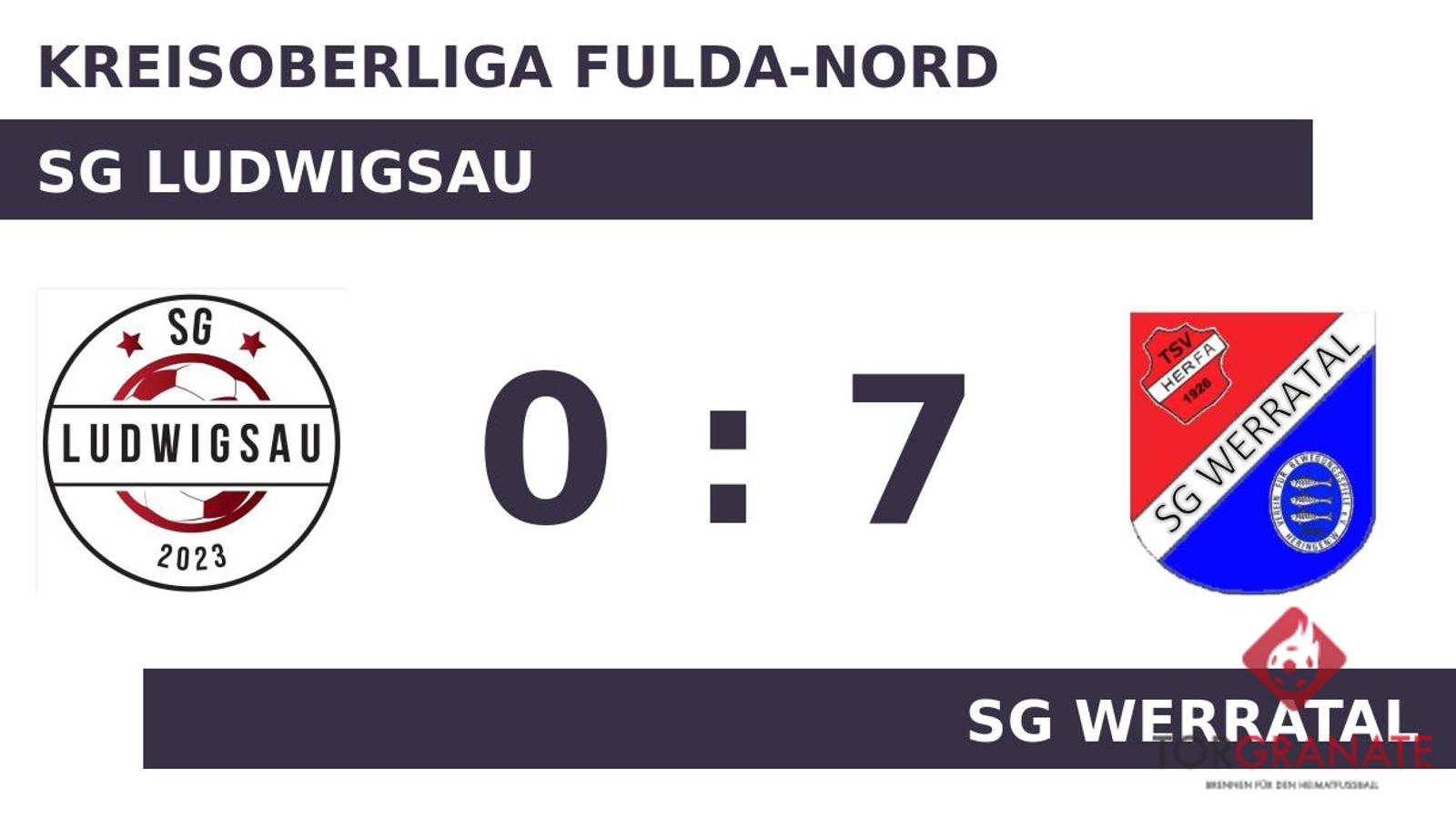 Kaum war das Spiel angepfiffen, lag die SG Werratal bereits in Front. Fabian Strinisko markierte in der dritten Minute die Führung. Alexander Deringer verwandelte in der 16. Minute einen Elfmeter und baute den Vorsprung der Werrataler auf 2:0 aus. Das letzte Tor der turbulenten Startphase markierte Jannes Erbe in der 18. Minute. Die SG Ludwigsau ließ zumindest bis zur Pause kein weiteres Tor zu und so blieb es bis zum Halbzeitpfiff beim deutlichen Vorsprung der SG Werratal. Mit Toren von Marvin Ruch (57./65.) und Silas Litz (63.) zeigte die SG Werratal weiterhin klar, wer dieses Spiel beherrschte. Tapdig Aliyev überwand den gegnerischen Schlussmann zum 7:0 für den Gast (89.). Am Ende fuhr die SG Werratal einen deutlichen Sieg ein. Dabei demonstrierte die SG Werratal bereits in Hälfte eins großes Leistungsvermögen, als man die SG Ludwigsau in Grund und Boden spielte.