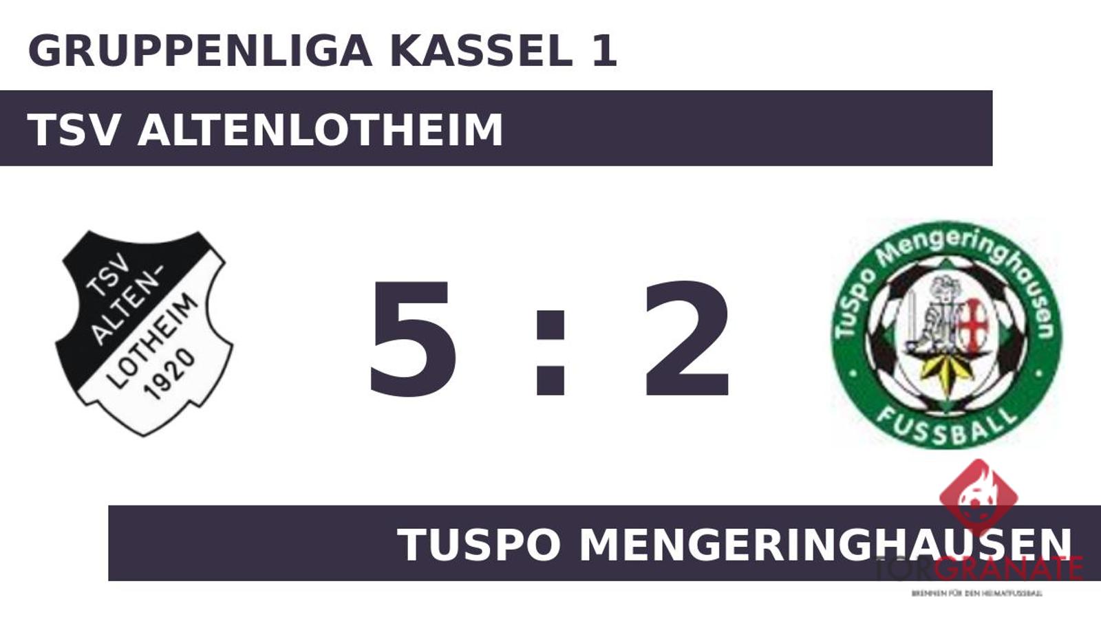 Der TSV Altenlotheim erwischte einen Blitzstart ins Spiel. Torben Garthe traf in der zweiten Minute zur frühen Führung. Der Gastgeber machte weiter Druck und erhöhte den Spielstand im Eilschritt durch einen Treffer von Robin Wissemann (3.). Nach nur 30 Minuten verließ Marcel Löhndorf von Mengeringhausen das Feld, Luca Lüther kam in die Partie. Noch bevor es in die Halbzeit ging, war Yannic Weiss mit dem 1:2 für die Gäste zur Stelle (44.). Ein Tor auf Seiten des TSV Altenlotheim machte zur Pause den Unterschied zwischen den beiden Mannschaften aus. Für das zweite Tor des TuSpo Mengeringhausen war Dominik Lüdke verantwortlich, der in der 63. Minute das 2:2 besorgte. Wenig später kamen Manuel Neuschäfer und Till Buckert per Doppelwechsel für Christian Schmid und Florian Green auf Seiten des TSV Altenlotheim ins Match (67.). Der TSV Altenlotheim drückte aufs Tempo und brachte sich durch Treffer von Wissemann (76.), Neuschäfer (77.) und Garthe (90.) auf die Siegerstraße. Ein starker Auftritt ermöglichte dem TSV Altenlotheim am Samstag einen ungefährdeten Erfolg gegen Mengeringhausen.