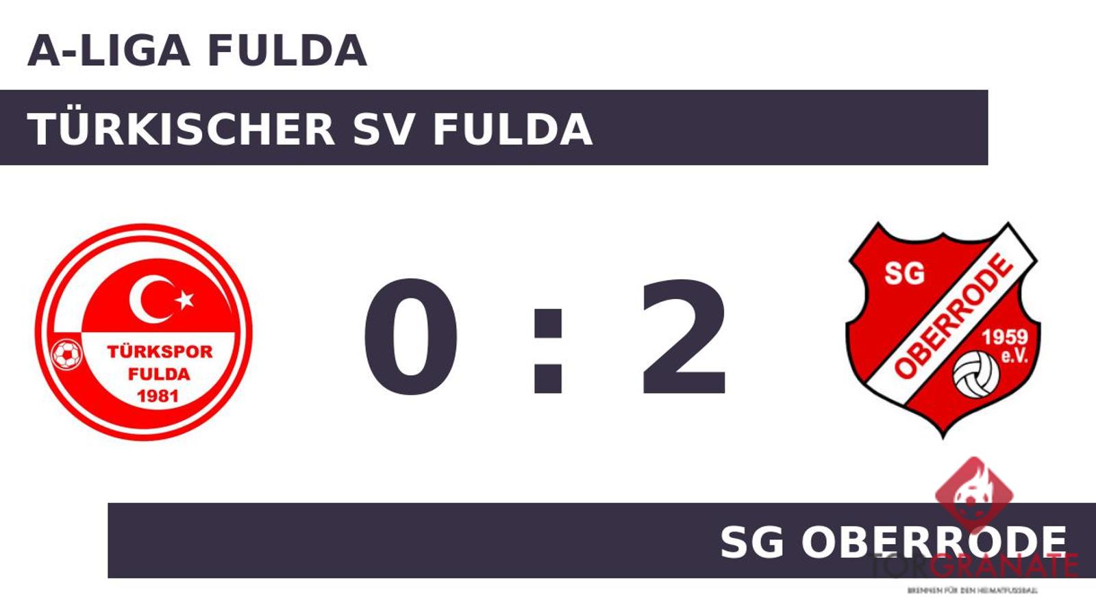 Dogan Kilic brachte die SG in der 24. Minute nach vorn. Marcel Schneider erhöhte den Vorsprung der Oberroder nach 39 Minuten auf 2:0. In der Pause wechselte der Türkischer SV den nominellen Stürmer Maik Schmidt für Elvis Bisevac ein. Die Hintermannschaft des TSV ließ bis zur Pause kein weiteres Tor zu und es ging bei unverändertem Stand in die Kabinen. Den Grundstein für den Sieg über die Fuldaer legte die SG Oberrode bereits in Halbzeit eins. Da in Durchgang zwei keine weiteren Treffer mehr fielen, war der Pausenstand am Ende auch das Endergebnis.