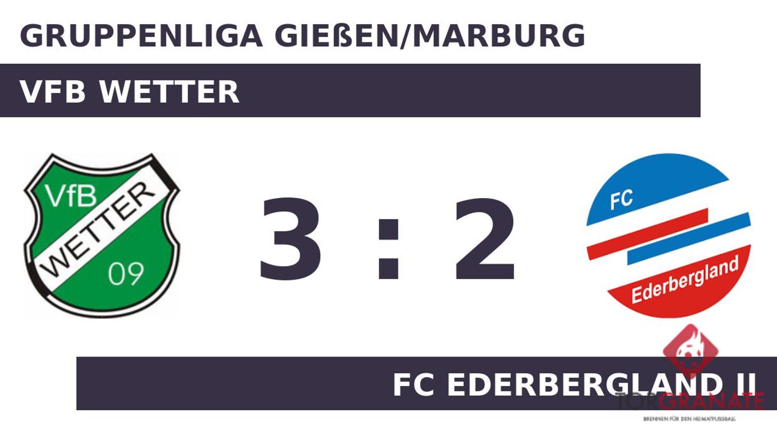 Der VfB Wetter ging durch Yanik Spenner in der 14. Minute in Führung. Bis zum Halbzeitpfiff blieb der knappe Vorsprung der Wetterer bestehen. Beim FC Ederbergland II kam zu Beginn der zweiten Hälfte Luca Greese für Moritz Graw in die Partie. Nach der Pause ging das Spiel ohne Jonas Braun weiter, dafür stand nun Joel Boesser beim VfB Wetter auf dem Feld. In der 53. Minute brachte Noah Lenz den Ball im Netz des VfB unter. Dogan Dizlek beförderte das Leder zum 2:1 von Ederbergland II in die Maschen (66.). Für das zweite Tor des VfB Wetter war Daniel Gröb verantwortlich, der in der 88. Minute das 2:2 besorgte. Der Schlusspfiff war zum Greifen nah, als Noah Drescher noch einen Treffer parat hatte (90.). Am Schluss siegte der VfB Wetter gegen den FC Ederbergland II.