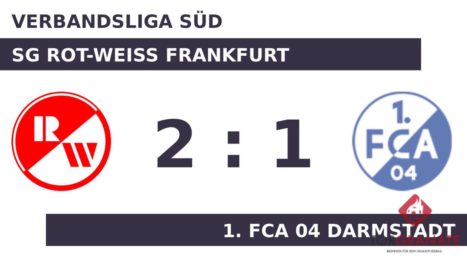 Luka Cabraja brachte das Rot-Weiss Frankfurt in der 17. Minute in Front. Gabriel Maximiliano Campora Martinez sicherte dem FCA Darmstadt nach 24 Minuten den Ausgleich durch einen Elfmeter. Vor dem Seitenwechsel sorgte Ryunosuke Aso mit seinem Treffer für eine kalte Dusche für die Gäste. Zur Pause wusste die SG Rot-Weiss Frankfurt eine hauchdünne Führung auf der Habenseite. Schließlich holte die SG Rot-Weiss gegen den direkten Abstiegskonkurrenten die Big Points und feierte einen 2:1-Sieg.