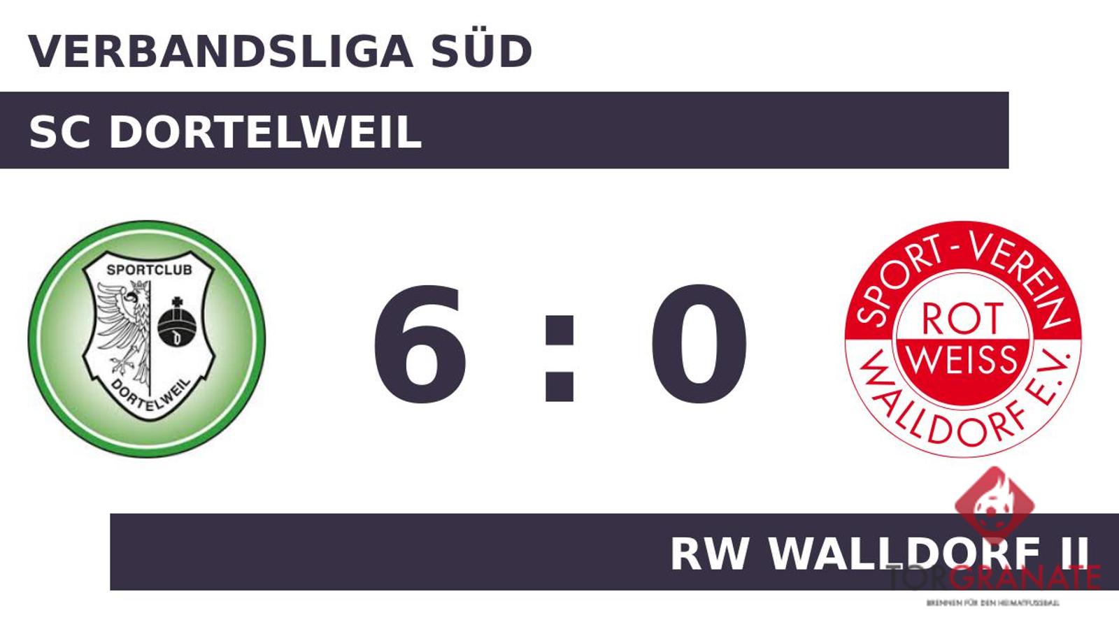 Marvin Strenger brachte den Sportclub in der 31. Minute nach vorn. In der 37. Minute brachte Adrijan Aslimoski das Netz für die Dortelweiler zum Zappeln. Als manch einer bereits mit den Gedanken in der Halbzeit war, besorgte Maurice Reininger auf Seiten des SCD das 3:0 (41.). Die Überlegenheit des Gastgebers spiegelte sich in einer deutlichen Halbzeitführung wider. Das RW Walldorf II kehrte stark verändert aus der Kabine zurück. Statt Ephraim Eshele, Duran Soytoprak und Ilias Benazza standen jetzt Massil Aimene, Amine Aidoud und Elias Sonntag auf dem Platz. Der SC Dortelweil konnte mit dem ersten Durchgang sehr zufrieden sein. Trotzdem gab es Veränderungen beim SC Dortelweil. Tugay Kuzpinari ersetzte Mohamed El Allaoui, der nun schon vorzeitig Feierabend machte. Mit dem 4:0 durch Aslimoski schien die Partie bereits in der 56. Minute mit dem SC Dortelweil einen sicheren Sieger zu haben. Der SC Dortelweil baute den Vorsprung mit der Hilfe des Gegners weiter aus: 5:0 für den SC Dortelweil durch ein Eigentor des RW Walldorf II in der 59. Minute. Dominik Steffen legte in der 73. Minute zum 6:0 für den SC Dortelweil nach. Am Ende fuhr der SC Dortelweil einen deutlichen Sieg ein. Dabei demonstrierte der SC Dortelweil bereits in Hälfte eins großes Leistungsvermögen, als man das RW Walldorf II in Grund und Boden spielte.