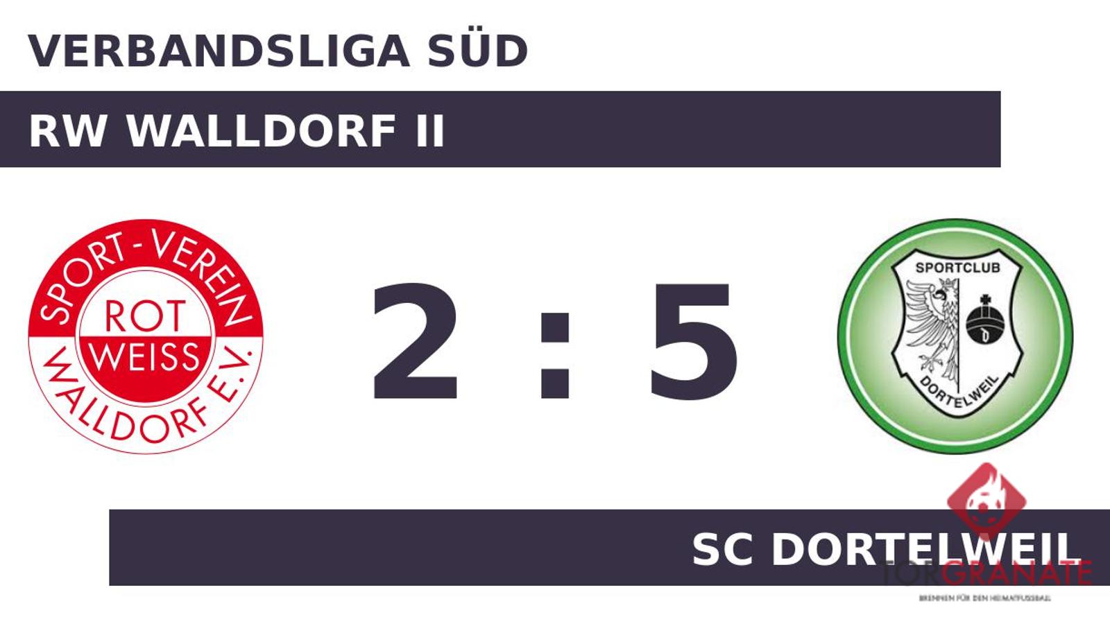 Ein frühes Ende hatte das Spiel für Julian Mistetzky vom Sportclub, der in der zehnten Minute vom Platz musste und von Jonas Mueller ersetzt wurde. Can Karakas brachte sein Team in der 25. Minute nach vorn. Das RW Walldorf II bejubelte noch das letzte Erfolgserlebnis, als Dominik Steffen für den Ausgleich sorgte (30.). Kurz vor dem Pfiff zur Halbzeit machte Oliver Steffen das 2:1 zugunsten des SC Dortelweil (40.). Wenige Momente vor dem Seitenwechsel war Maurice Reininger mit dem 3:1 für die Dortelweiler zur Stelle (44.). Es waren die Gäste, die zur Pause eine Führung ihr Eigen nannten. Mit einem Wechsel – Ilias Boutayeb kam für Tom Kohnhaeuser – startete das RW Walldorf II in Durchgang zwei. Anstelle von Aid Sulejmani war nach Wiederbeginn Marcel Levy für das Heimteam im Spiel. Für den nächsten Erfolgsmoment des SC Dortelweil sorgte Adrijan Aslimoski (48.), ehe Oliver Steffen das 5:1 markierte (61.). In der 79. Minute brachte Kays Iraqi das Netz für das RW Walldorf II zum Zappeln. Letztlich fuhr der SC Dortelweil einen souveränen Erfolg ein, dessen Grundstein im ersten Spielabschnitt gelegt worden war.