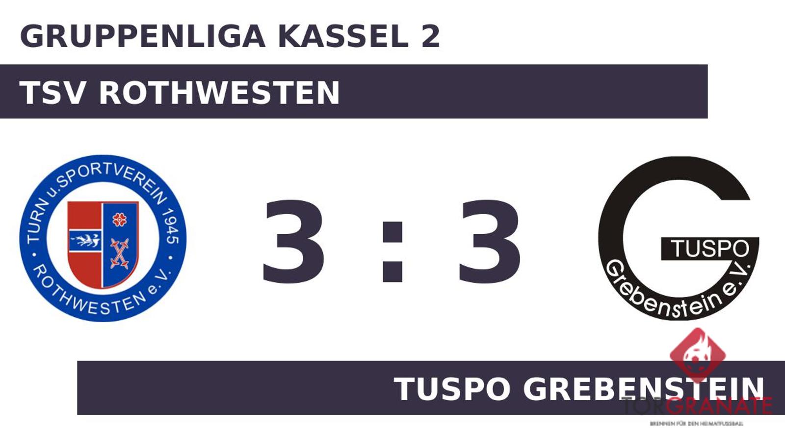 Für das erste Tor sorgte Anthony Uzzolino. In der 17. Minute traf der Spieler des Tuspo Grebenstein ins Schwarze. Bevor es in die Pause ging, hatte Igor Losic noch das 1:1 des TSV Rothwesten parat (41.). Zur Halbzeit war die Partie noch vollkommen offen. Remis lautete das Zwischenresultat. Für das zweite Tor des TSV Rothwesten war Maximilian Werner verantwortlich, der in der 61. Minute das 2:1 besorgte. In der 69. Minute stellte der TSV personell um: Per Doppelwechsel kamen Dejan Bojic und Nikolaj Eckhardt auf den Platz und ersetzten Karim Belarbi und Christian Guthof. Eckhardt verwandelte in der 70. Minute einen Elfmeter und baute den Vorsprung des Turn- und Sportverein auf 3:1 aus. Mit dem zweiten Treffer von Uzzolino rückte der Tuspo Grebenstein wieder ein wenig an den TSV Rothwesten heran (86.). Kurz vor dem Ende des Spiels jubelte Timon Schmidt mit seinen Teamkollegen über seinen Treffer in der 89. Minute, der einen Gleichstand herbeiführte. Am Schluss hatte im Duell der beiden Mannschaften keine die Oberhand gewonnen und so trennten sich der TSV Rothwesten und der Tuspo Grebenstein schließlich mit einem Remis.