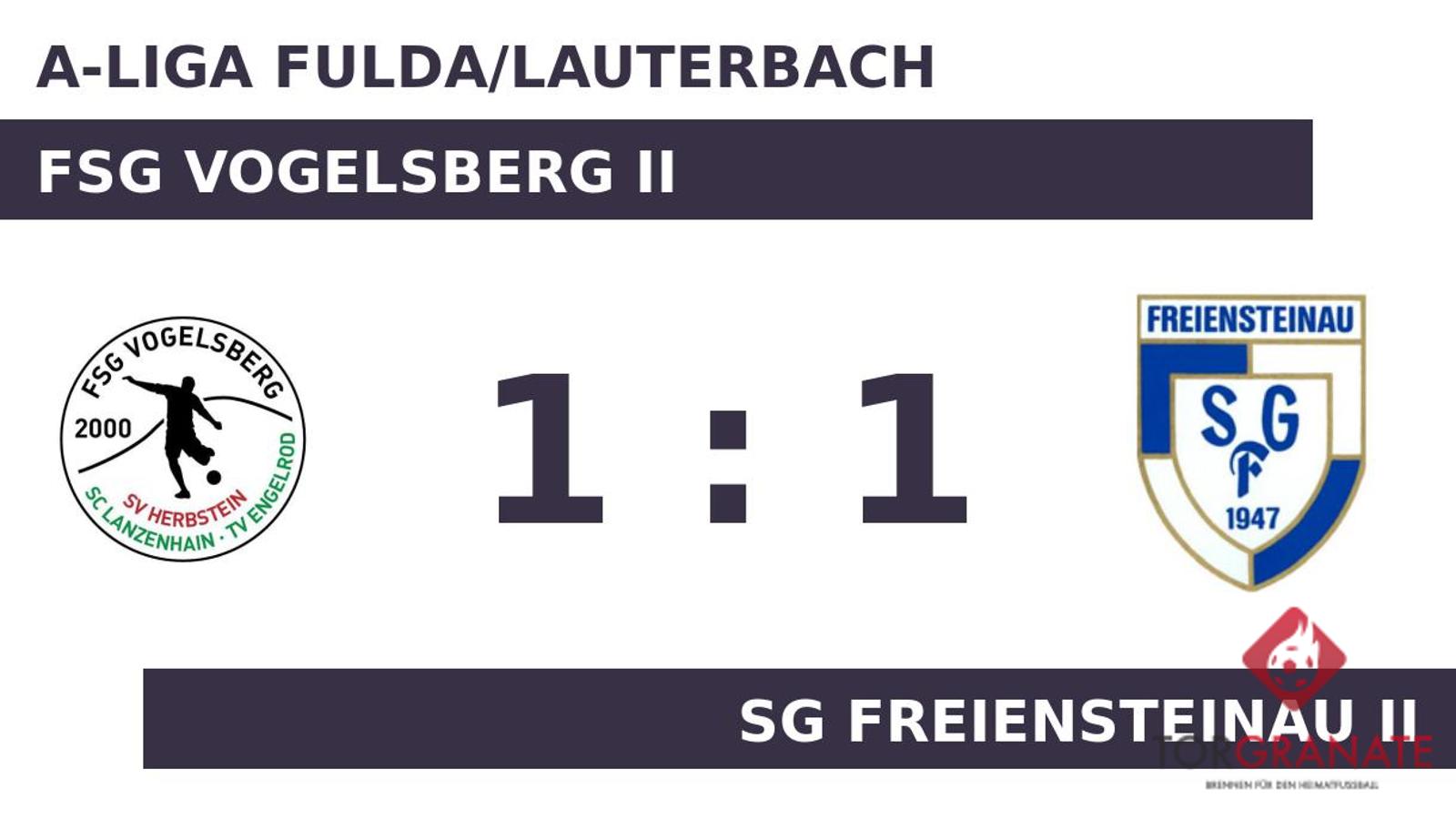 Abdoulaye Bah nutzte die Chance für die FSG Vogelsberg II und beförderte in der 26. Minute das Leder zum 1:0 ins Netz. Bis zur Pause fiel kein weiteres Tor, sodass die FSG mit einer Führung in die Kabine ging. Für das 1:1 von SG Freiensteinau II zeichnete Roland Lotz verantwortlich (62.). Letzten Endes wurde im Aufeinandertreffen der FSG Vogelsberg II mit SG Freiensteinau II kein Sieger ermittelt.