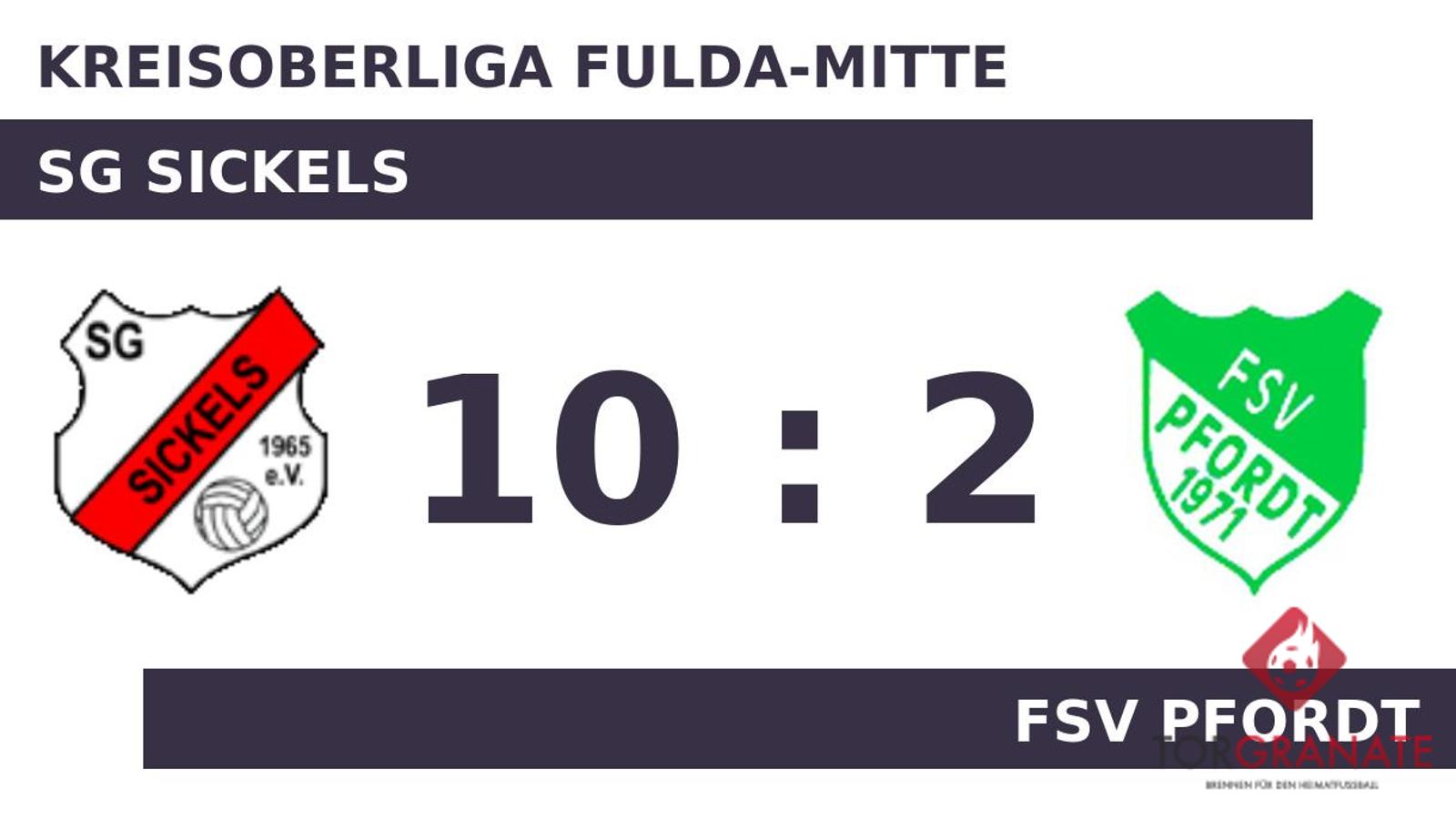 Durch den nie gefährdeten Sieg gegen den FSV Pfordt festigte die SG Sickels den dritten Tabellenplatz. Mit 70 geschossenen Toren gehört die SG Sickels offensiv zur Crème de la Crème der Kreisoberliga Fulda-Mitte. Die SG Sickels knüpft mit dem Sieg an die guten Auftritte in der bisherigen Saison an. Insgesamt sammelte die SG Sickels 13 Siege, zwei Unentschieden und kassierte nur fünf Niederlagen.
