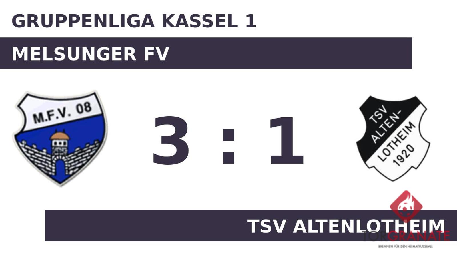 Ehe der Referee Lars-Hendrik Köpsel (Kalbach) die Protagonisten zur Pause bat, traf Patrick Möller zum 1:0 zugunsten des Melsunger FV (41.). Einen Torerfolg in Halbzeit eins verbuchte lediglich der MFV, womit man eine knappe Führung mit in die Kabinen nahm. In der 49. Minute erhöhte Enes Sezer auf 2:0 für den MFV 08. In der 60. Minute brachte Rudi Gabriel Hofert den Ball im Netz der Melsunger unter. In der 67. Minute erzielte Christian Riemenschneider das 3:1 für die Bartenwetzer. In den 90 Minuten war die Heimmannschaft im gegnerischen Strafraum erfolgreicher als der TSV Altenlotheim und fuhr somit einen 3:1-Sieg ein.