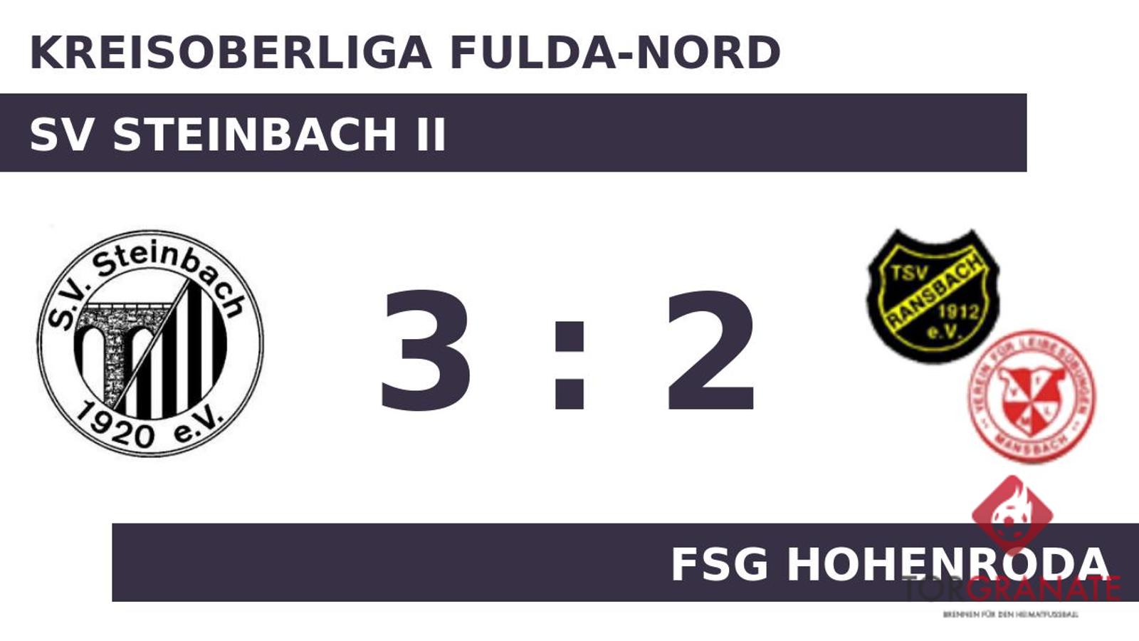 Christian Beikirch brachte sein Team in der 14. Minute nach vorn. Die Führung hielt allerdings nur fünf Minuten. Ein Eigentor brachte den Ausgleich für die FSG Hohenroda (19.). Bis zur Pause fiel kein weiteres Tor, sodass es schließlich mit unverändertem Ergebnis in die Kabinen ging. Julian Suresch verwandelte in der 57. Minute einen Elfmeter und brachte der FSG Hohenroda die 2:1-Führung. Den Freudenjubel der FSG machte Beikirch zunichte, als er kurz darauf den Ausgleich besorgte (63.). Louis Quanz brachte dem SV Steinbach II nach 70 Minuten die 3:2-Führung. Als Schiedsrichter Oliver Romanow (Petersberg) die Partie abpfiff, reklamierten die Steinbacher schließlich einen 3:2-Heimsieg für sich.