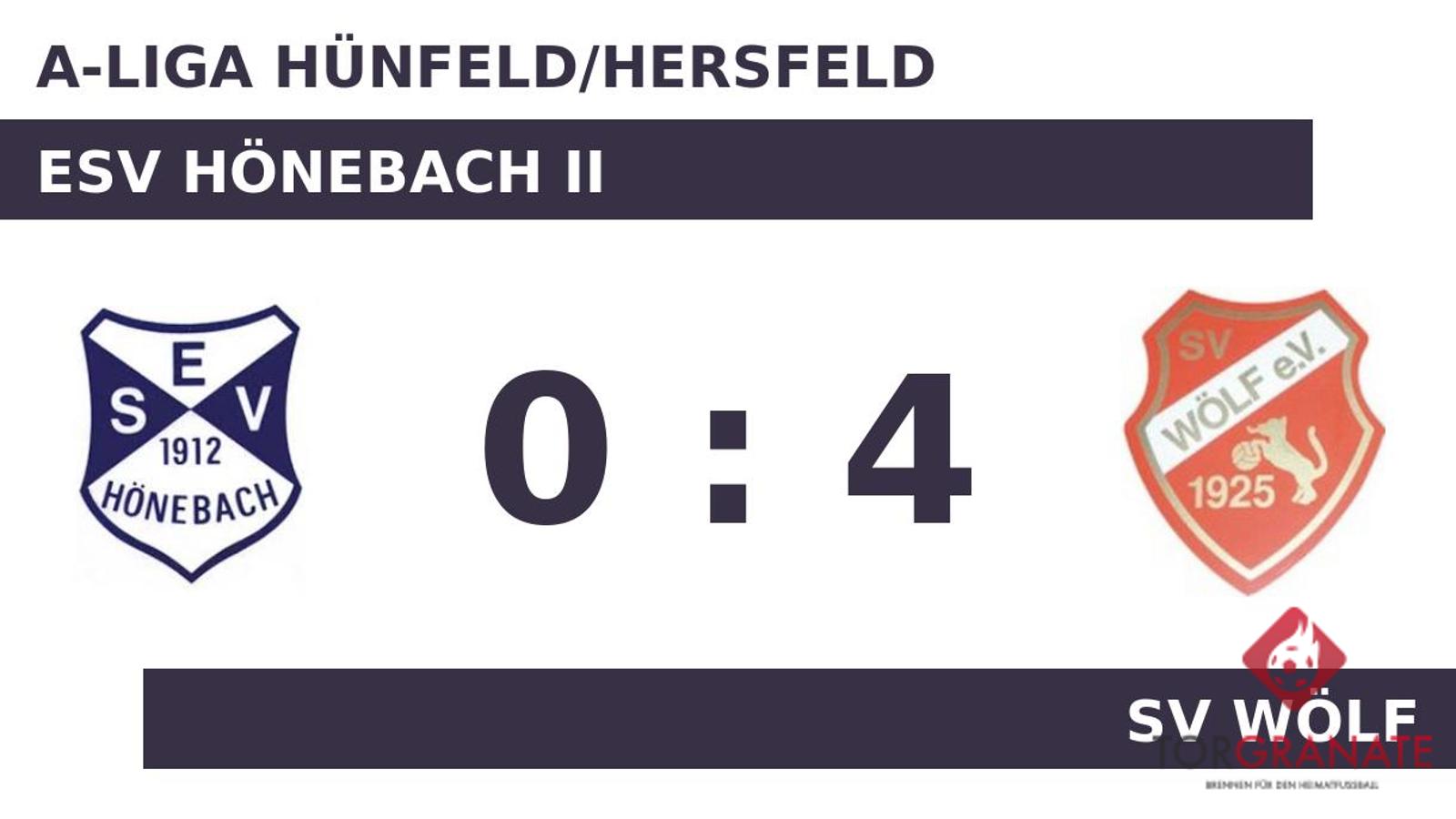 Marko Madzar brachte die Wölfe in der 33. Minute in Front. Kurz vor dem Seitenwechsel legte Christopher Bock das 2:0 nach (41.). Es waren die Gäste, die zur Pause eine Führung ihr Eigen nannten. Der SV Wölf baute die Führung aus, indem Bock zwei Treffer nachlegte (50./88.). Wenig später kamen Samir Bachmann und Felix Fey per Doppelwechsel für Alexander Kraus und Simon Meissmer auf Seiten des rot-weißes Wolfsrudel ins Match (55.). Bei ESV Hönebach II ging in der 88. Minute der etatmäßige Keeper Kevin Geppert raus, für ihn kam Sebastian Knoth. Letztlich fuhr der SV Wölf einen souveränen Erfolg ein, dessen Grundstein im ersten Spielabschnitt gelegt worden war.
