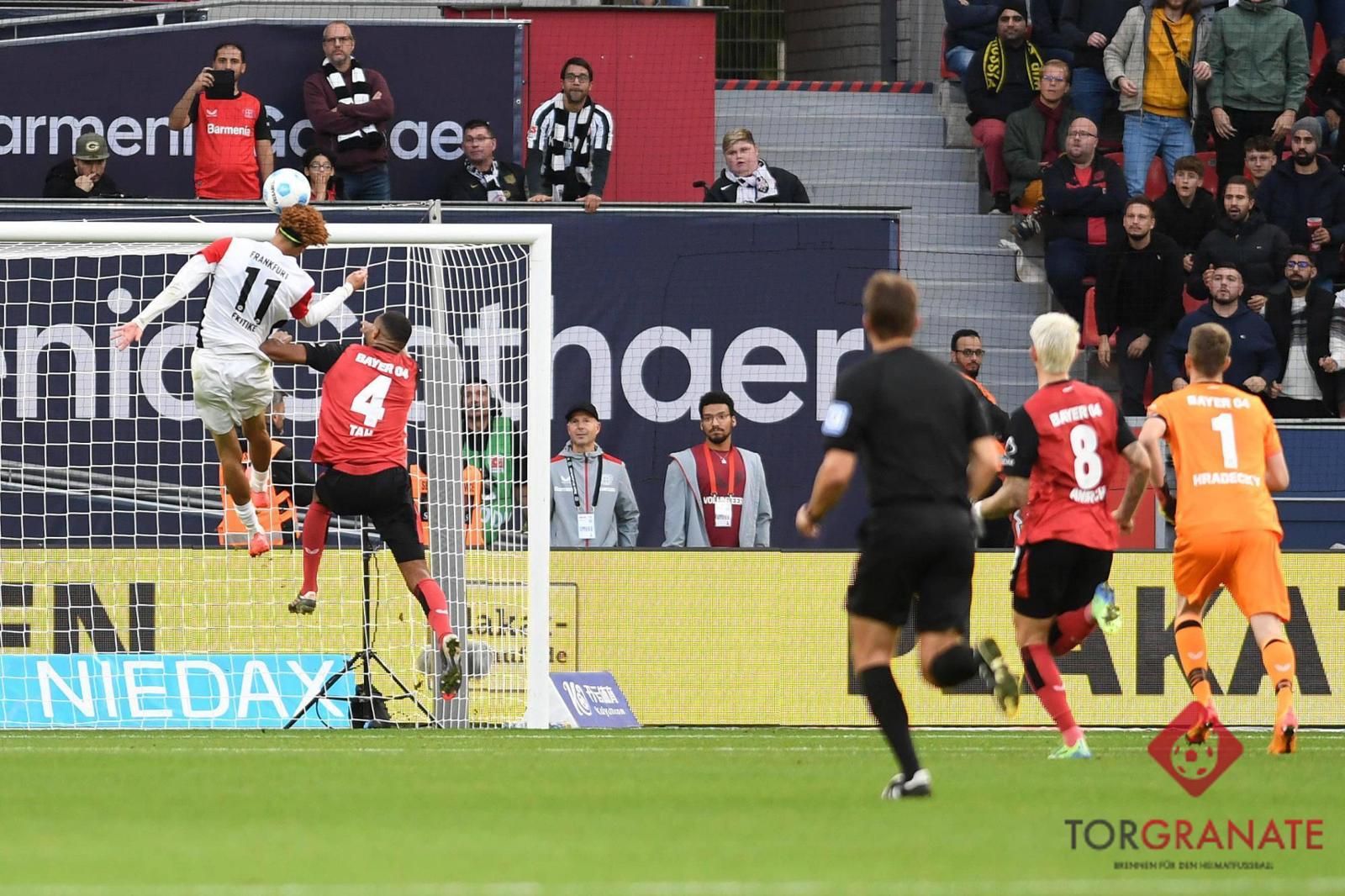 Frankfurt - Die Begegnung zwischen Bayer Leverkusen und Eintracht Frankfurt in der aktuellen Bundesliga-Saison war geprägt von einer der kontroversesten Szenen. In der Nachspielzeit traf ein Befreiungsschlag von Bayer-Torwart Lukas Hradecky Jonathan Tah im Rücken. Daraufhin entstand eine Bogenlampe, die Eintracht-Stürmer Hugo Ekitiké nutzte, um frei auf das leere Tor zuzulaufen. Doch kurz nach dem Absprung wurde er bei seinem Kopfballversuch von Tah zu Boden gestoßen. All dies ereignete sich bei einem Spielstand von 1:2 aus Frankfurter Sicht.
