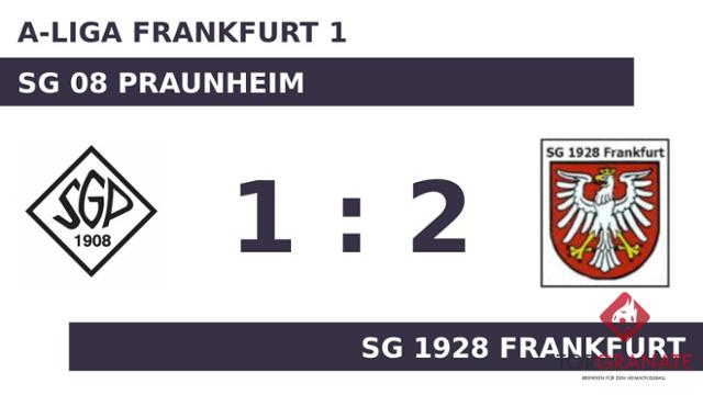 Arif Krasniqi brachte die SG 1928 Frankfurt in der 28. Minute in Front. Wer glaubte, SG Praunheim sei geschockt, irrte. Philipp Korz machte unmittelbar nach dem Rückschlag den Ausgleich perfekt (30.). Noch bevor es in die Halbzeit ging, war Zlatan Perosevic mit dem 2:1 für die SG 1928 Frankfurt zur Stelle (45.). Der Gast ging mit Formationsänderungen in die zweite Halbzeit, da Tunai Ismailovski nun für Gökhan Arslan weiterspielte. Zur Pause reklamierte die SG 1928 Frankfurt eine knappe Führung für sich. In der 69. Minute stellte SG 08 Praunheim personell um: Per Doppelwechsel kamen Fabio Amico und Georgios Napole Basogiannis auf den Platz und ersetzten Timo Enders und Manuel Priesnitz. Obwohl der SG 1928 Frankfurt nach erfolgreicher erster Hälfte keine weiteren Tore gelangen, schaffte es SG Praunheim zugleich nicht, die Partie zu drehen. Sie endete mit dem Halbzeitstand von 2:1.