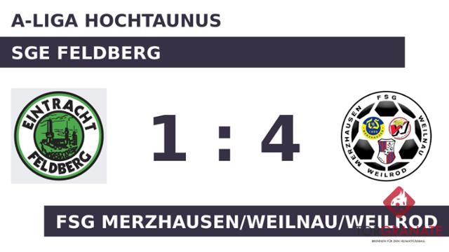 Sven Baumann trug sich in der zehnten Spielminute in die Torschützenliste ein. Kurz vor dem Pfiff zur Halbzeit machte Tom Haenisch das 2:0 zugunsten der FSG Merzhausen/Weilnau/Weilrod (43.). Als manch einer bereits mit den Gedanken in der Halbzeit war, besorgte Marlon Wietschorke auf Seiten der FSG das 3:0 (45.). Zur Halbzeit blickten die FSGler auf einen klaren Vorsprung gegen einen Gegner, den man deutlich beherrschte. Die SGE Feldberg verkürzte den Rückstand in der 70. Minute durch einen Elfmeter von Julian Mueller Braun auf 1:3. Robin Klimmek gelang in den Schlussminuten noch ein weiterer Treffer für das Merzh./Weiln./Weilr. (90.). Ein starker Auftritt ermöglichte der Dreier-SG am Sonntag einen ungefährdeten Erfolg gegen die SGE Feldberg.