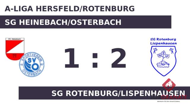 Die erste Halbzeit endete ohne ein zählbares Ereignis für beide Mannschaften. Elias Wefringhaus brach für Heinebach/Osterbach den Bann und markierte in der 64. Minute die Führung. Steffen Kanngießer sicherte Rotenburg/Lispenh. nach 70 Minuten den Ausgleich durch einen Elfmeter. Das Spiel neigte sich seinem Ende entgegen, als Marcel Möller den entscheidenden Führungstreffer für die Gäste erzielte (83.). Am Ende verbuchte die SG Rotenburg/Lispenhausen gegen die SG Heinebach/Osterbach einen Sieg.