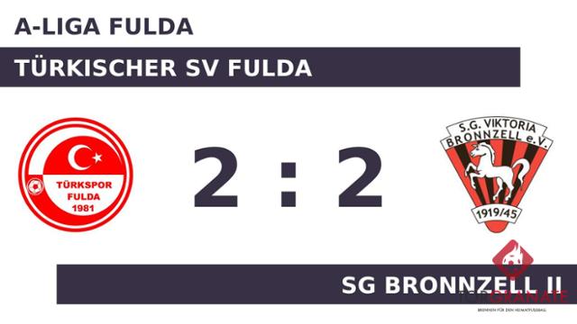 Für das 1:0 des Türkischer SV zeichnete Ümit Oguz verantwortlich (13.). Jetzt erst recht, dachte sich Marvin Plüschke, der kurz nach dem Nackenschlag den Ausgleich parat hatte (17.). Das letzte Tor der turbulenten Startphase markierte Noah Bockmühl in der 26. Minute. Der Türkischer SV Fulda war gewillt auszugleichen. Bis zum Seitenwechsel sprang jedoch nichts Zählbares mehr heraus. Der TSV kam durch ein Eigentor der SG Bronnzell II in der 90. Minute zum Ausgleich. Am Ende stand ein Teilerfolg für beide Mannschaften. Der Türkischer SV und die SG Bronnzell II spielten unentschieden.