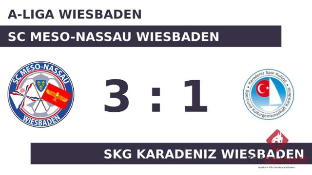 Kaum war das Spiel angepfiffen, lagen die Gastgeber bereits in Front. Abod Barsom markierte in der ersten Minute die Führung. Der Tabellenführer machte weiter Druck und erhöhte den Spielstand im Eilschritt durch einen Treffer von Afroth Gourie (6.). Bevor es in die Pause ging, hatte Salvo Ansani noch das 3:0 des SC Meso-Nassau Wiesbaden parat (43.). Der SC Meso-Nassau dominierte den Gegner zur Pause nach Belieben und ging mit einer deutlichen Führung in die Kabine. In der Halbzeit nahm das Karadeniz Wiesbaden gleich zwei Wechsel vor. Fortan standen Hassen Daniel Ali und Deividas Rasymas für Onur Tasdelen und Oguzhan Tuna auf dem Platz. Rasymas schoss die Kugel zum 1:3 für den Tabellenletzten über die Linie (78.). Obwohl dem SC Meso-Nassau Wiesbaden nach erfolgreicher erster Hälfte keine weiteren Tore gelangen, schaffte es die SKG Karadeniz Wiesbaden zugleich nicht, die Partie zu drehen. Sie endete mit 3:1.