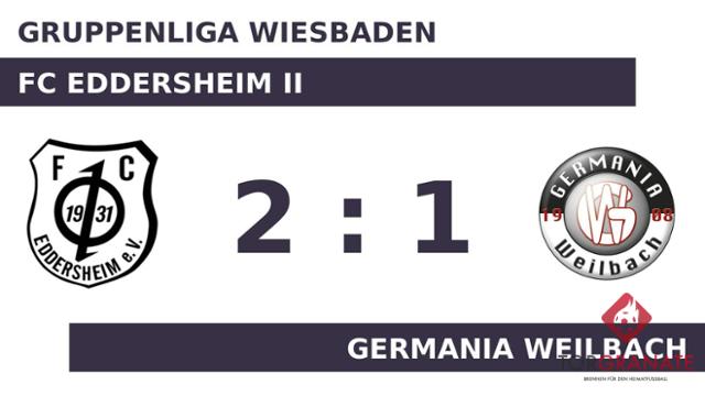 Deniz Krebs beförderte das Leder zum 1:0 des FC Eddersheim II in die Maschen (28.). Kurz vor dem Halbzeitpfiff (43.) baute Luftrim Kodralija die Führung der Heimmannschaft aus. In Durchgang zwei lief Milos Calosevic anstelle von Pierre Alusse für die Germania Weilbach auf. Der Schiedsrichter schickte schließlich beide Mannschaften ohne weitere Änderung am Spielstand in die Kabinen. Der FC Eddersheim II musste den Treffer von Jens Langer zum 1:2 hinnehmen (52.). Obwohl dem FC Eddersheim II nach erfolgreicher erster Hälfte keine weiteren Tore gelangen, schaffte es die Germania Weilbach zugleich nicht, die Partie zu drehen. Sie endete mit 2:1.