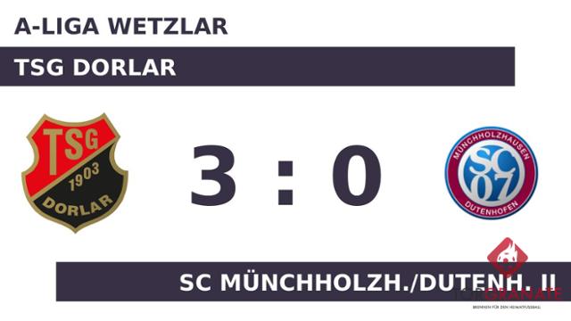 Laurin De Bona brachte der Heimmannschaft nach 21 Minuten die 1:0-Führung. Zur Pause hatte die TSG Dorlar eine hauchdünne Führung inne. Für das 2:0 und 3:0 war Marco Fabrizio verantwortlich. Der Akteur traf gleich zweimal ins Schwarze (55./68.). Am Schluss schlug die TSG Dorlar den SC Münchholzh./Dutenh. II mit 3:0.