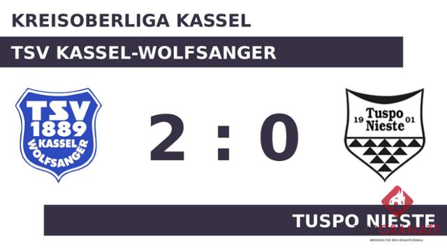 Der TSV Kassel-Wolfsanger ging durch Andreas Meier in der 29. Minute in Führung. Mit einem Tor Vorsprung für die Gastgeber ging es für die beiden Teams nach dem Pausenpfiff in die Kabinen. Kristian Noja versenkte die Kugel zum 2:0 (77.). Am Schluss siegte der TSV Wolfsanger gegen den Tuspo Nieste.